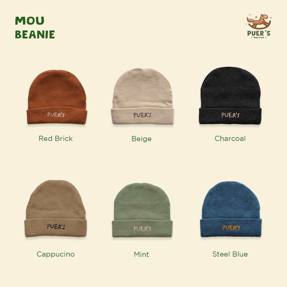 BEANIE BAYI PUER'S MOU MOTIF BEANIE ( TOPI BAYI/ TOPI ANAK /BEANIE ANAK/ KUPLUK BAYI)