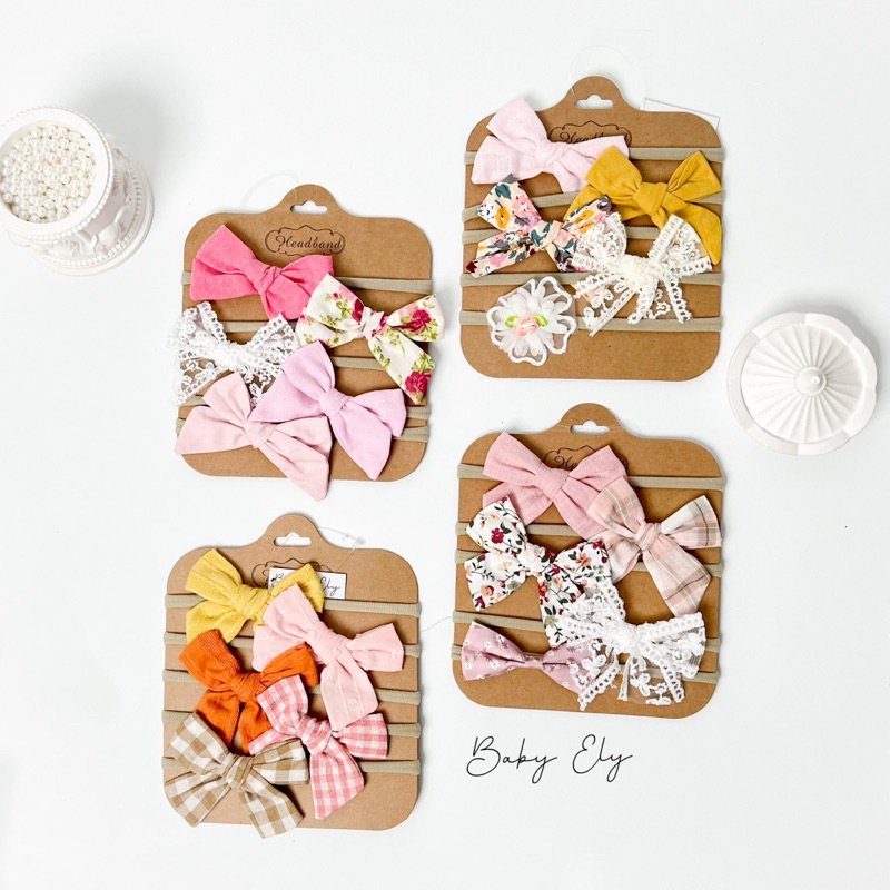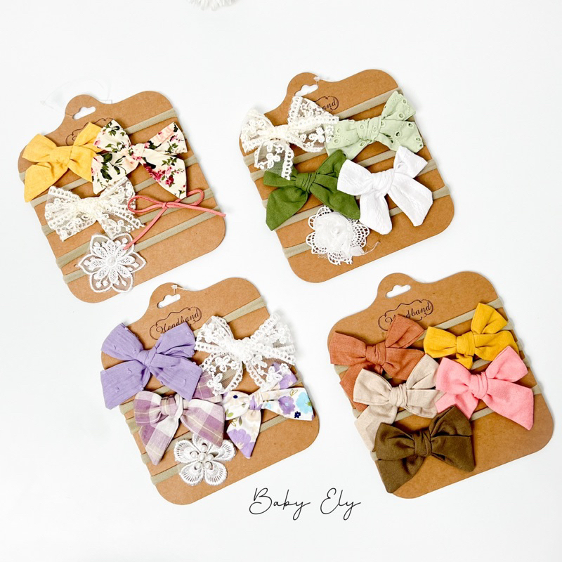 BABY ELY | 0-3 th 5pcs/set Camellia Ban bayi perempuan newborn bando anak perempuan premium korea pita besar halus elast