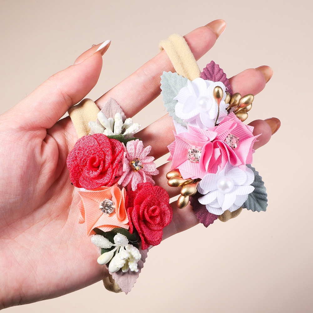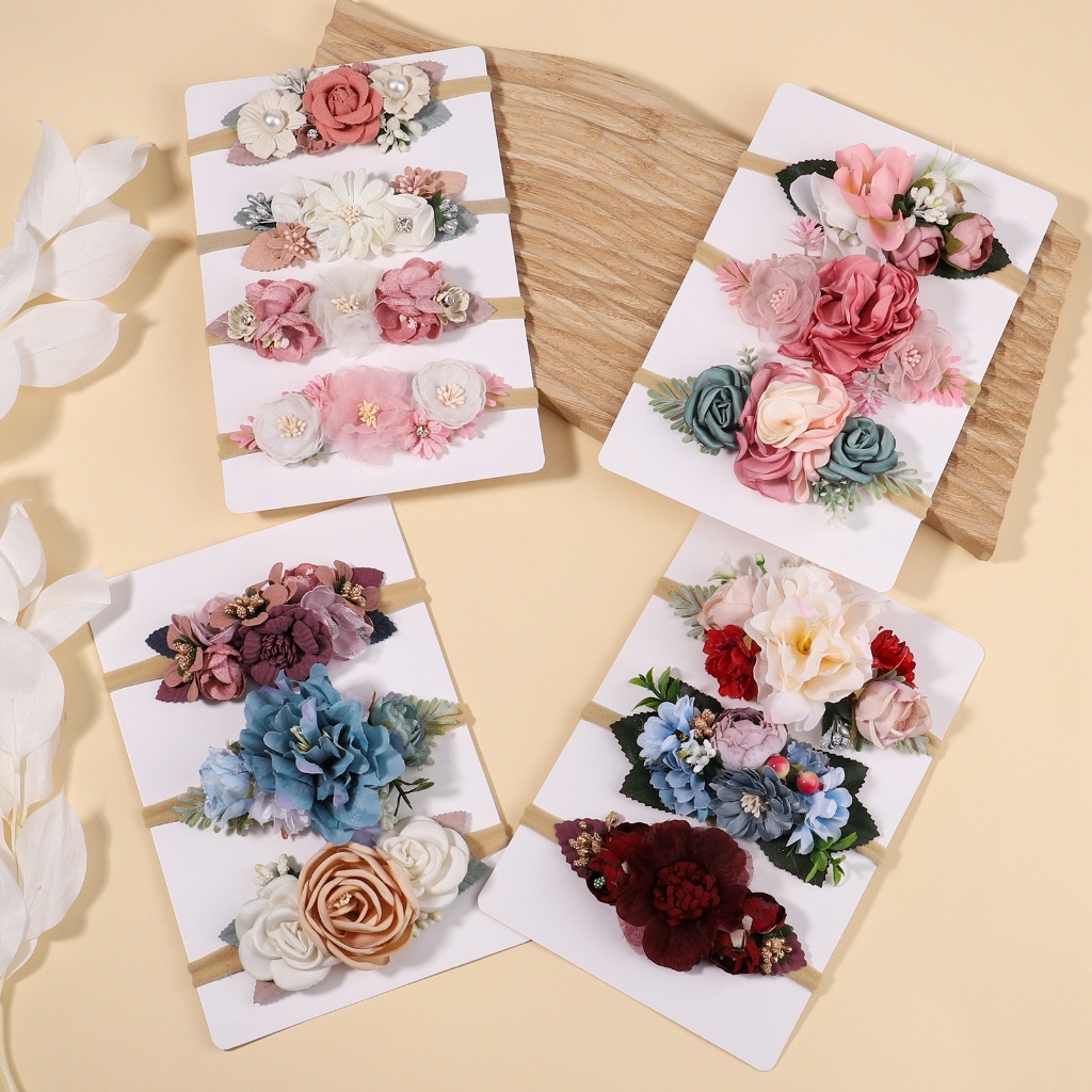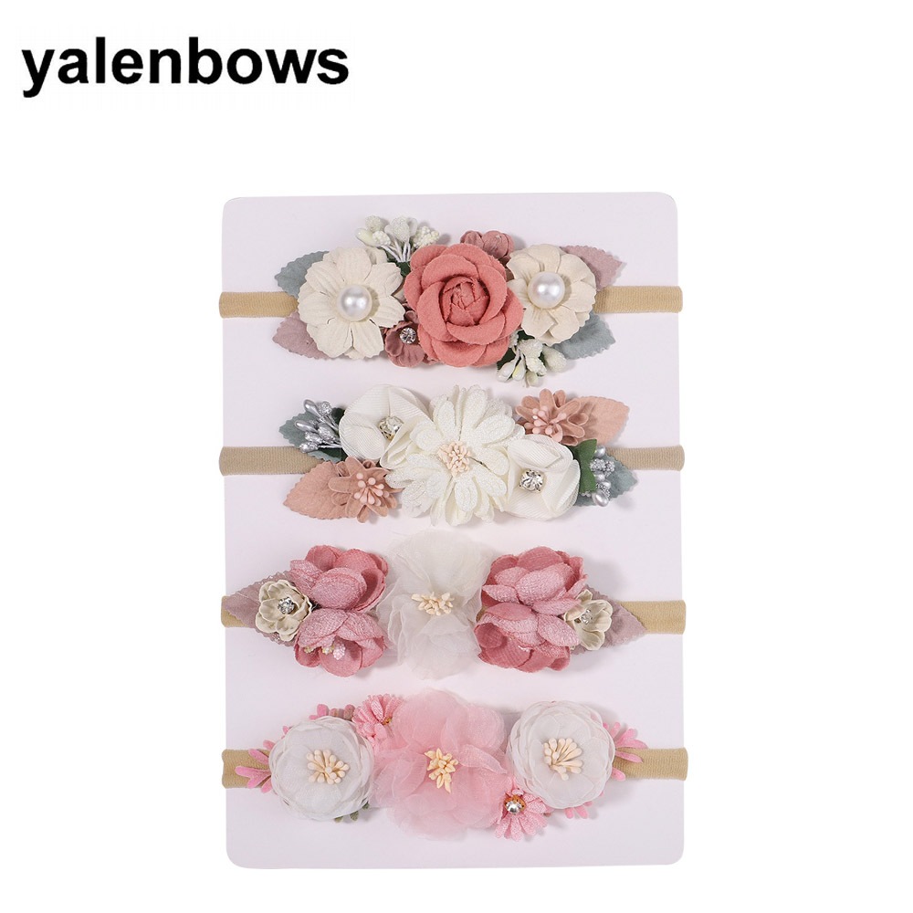 3/4Pcs/set Cute Artificial Flower Baby Elastic Headband Newborn Nylon Hair Bands Toddler Kids Hairbands Headwear Gift
