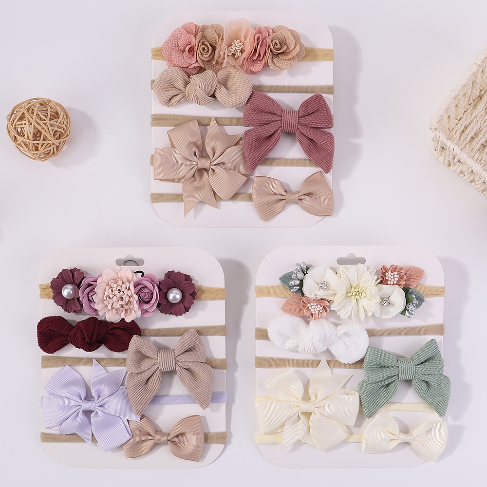 5pcs/Set Newborn Handmade Solid Color Cotton Headband Girls Bow Bow Bow Elastic Nylon Hair Bands Hadiah Rambut Hadiah