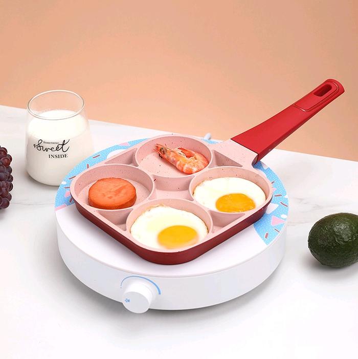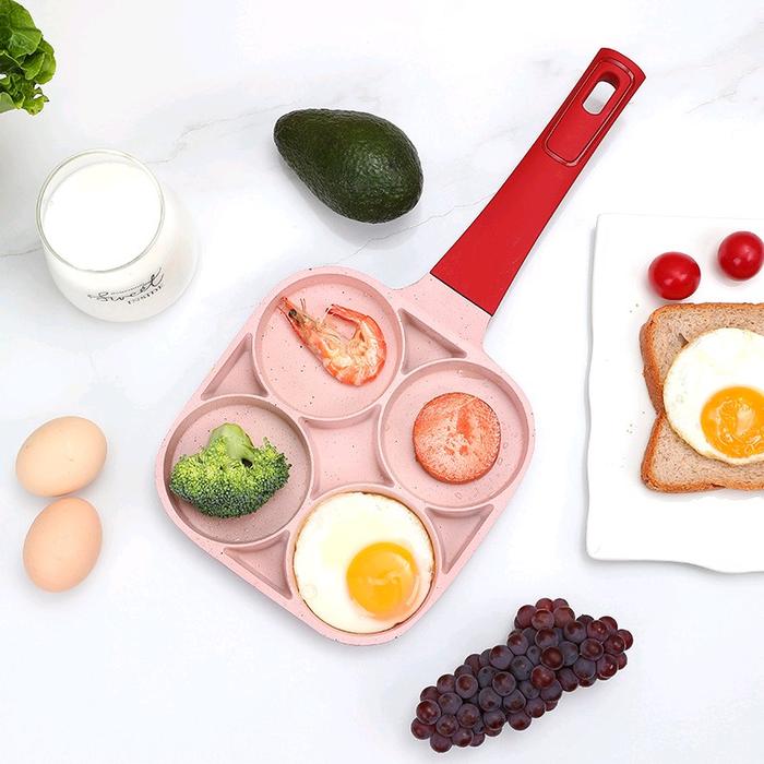 Panci Wajan Telur 4 Lubang Penggorengan Teflon Martabak Telor Pancake Burger Anti Lengket Non Stick - Merah