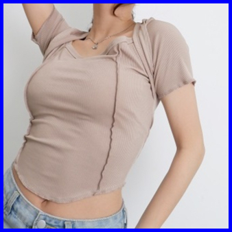Premiumsquare Neck Short Sleeve Crop Top T-shirt 3500 S M L Xl