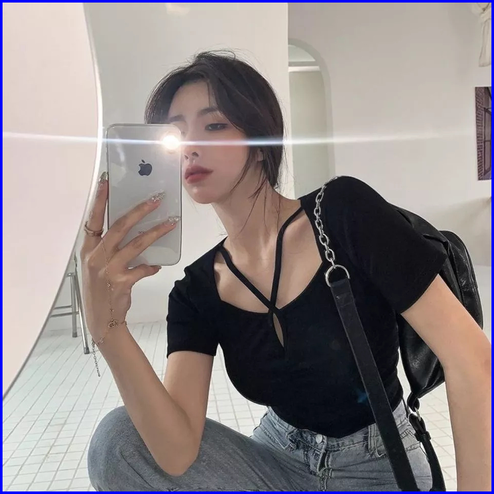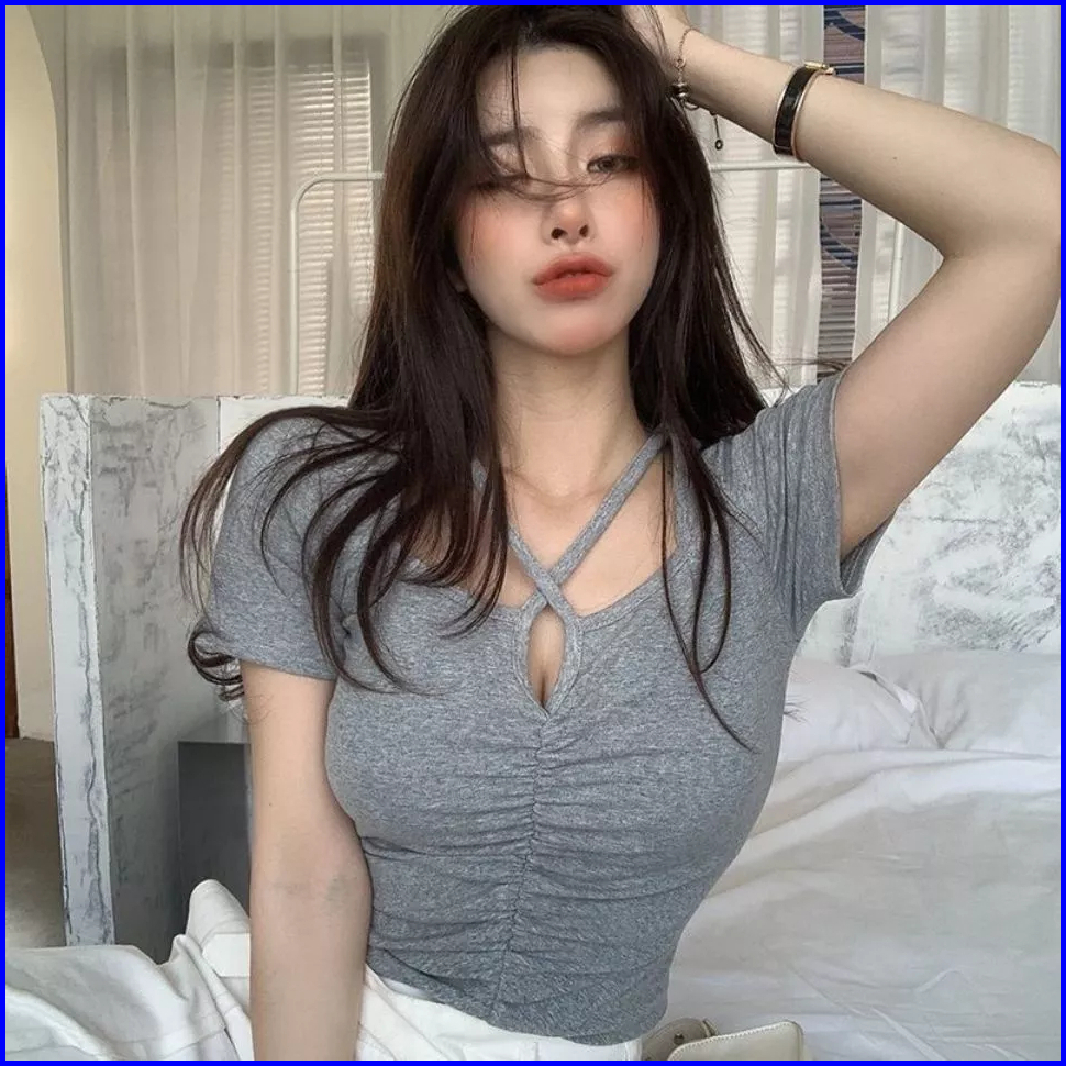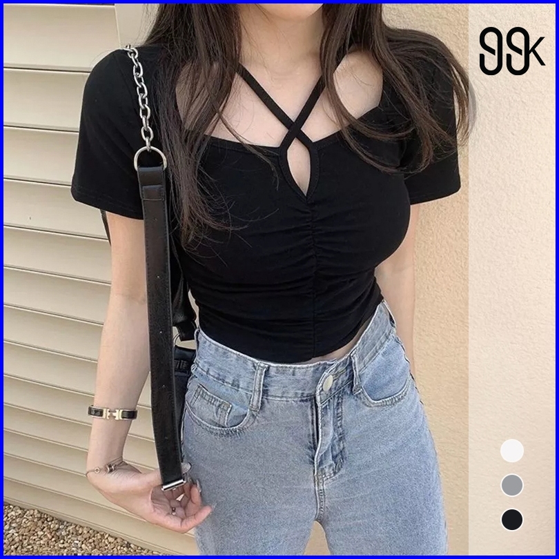 Cross Square Neck Short Sleeve Ruched Top 1733 S M L Xl