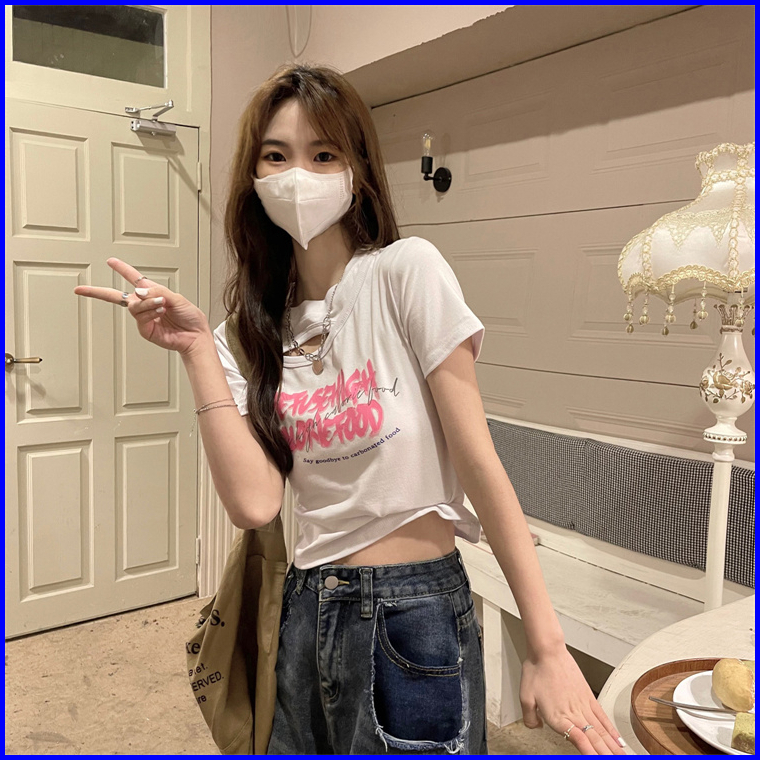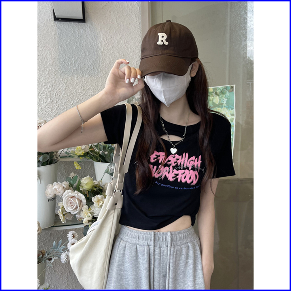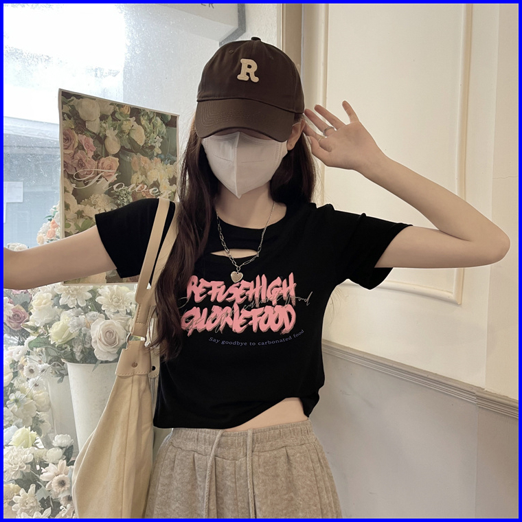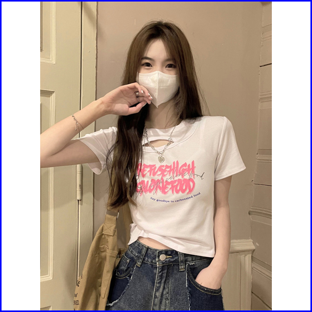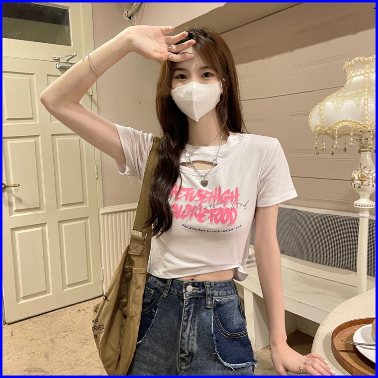 Casual Crew Neck Short Sleeve Print Cut Out Crop Top 2938 M L Xl