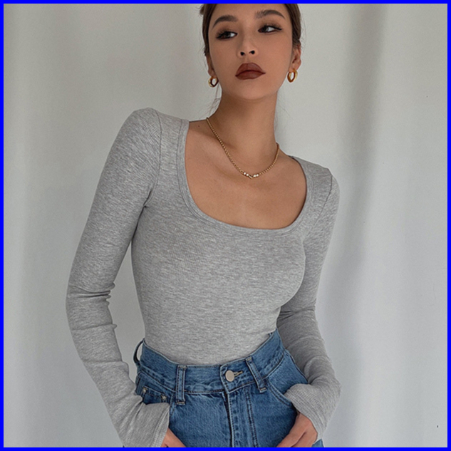 Premiumbasic Square Neck Long Sleeve Top 7139 S M L