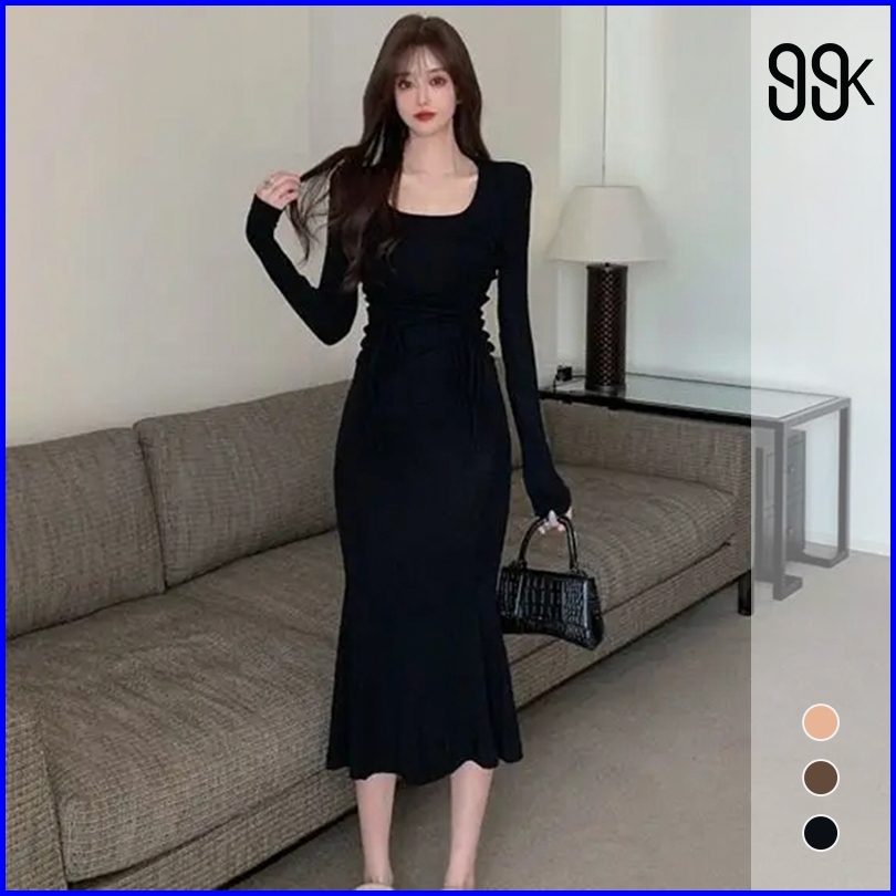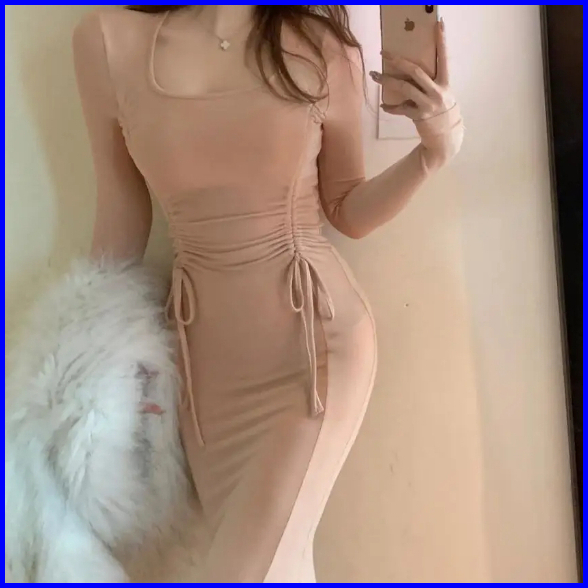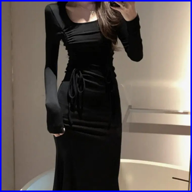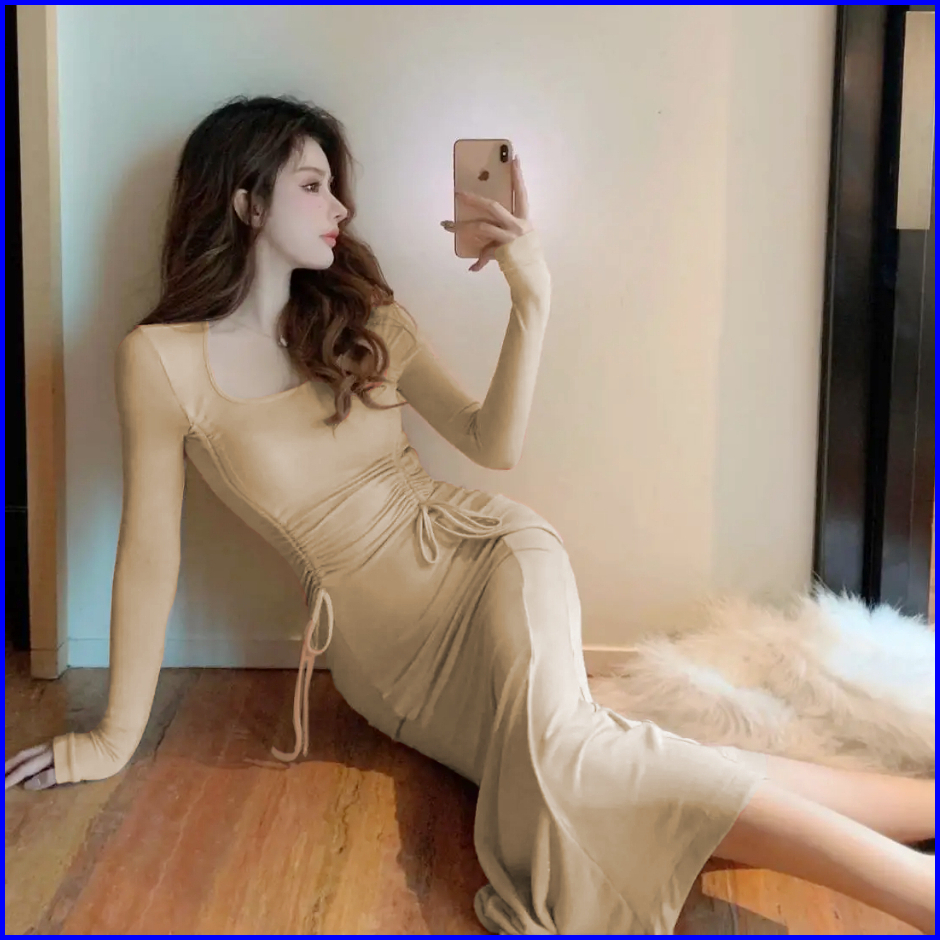 Women S Plain Long Sleeve Drawstring Maxi Dress 1788 S M L Xl