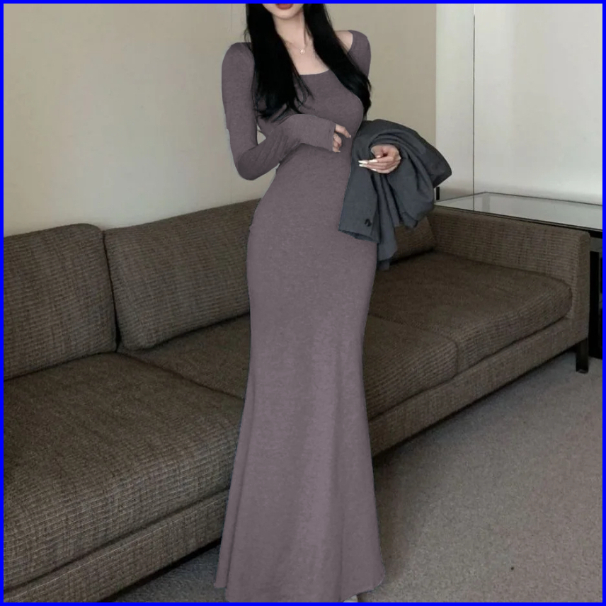 Women S Plain Square Neck Long Sleeve Maxi Dress 1789 S M L Xl