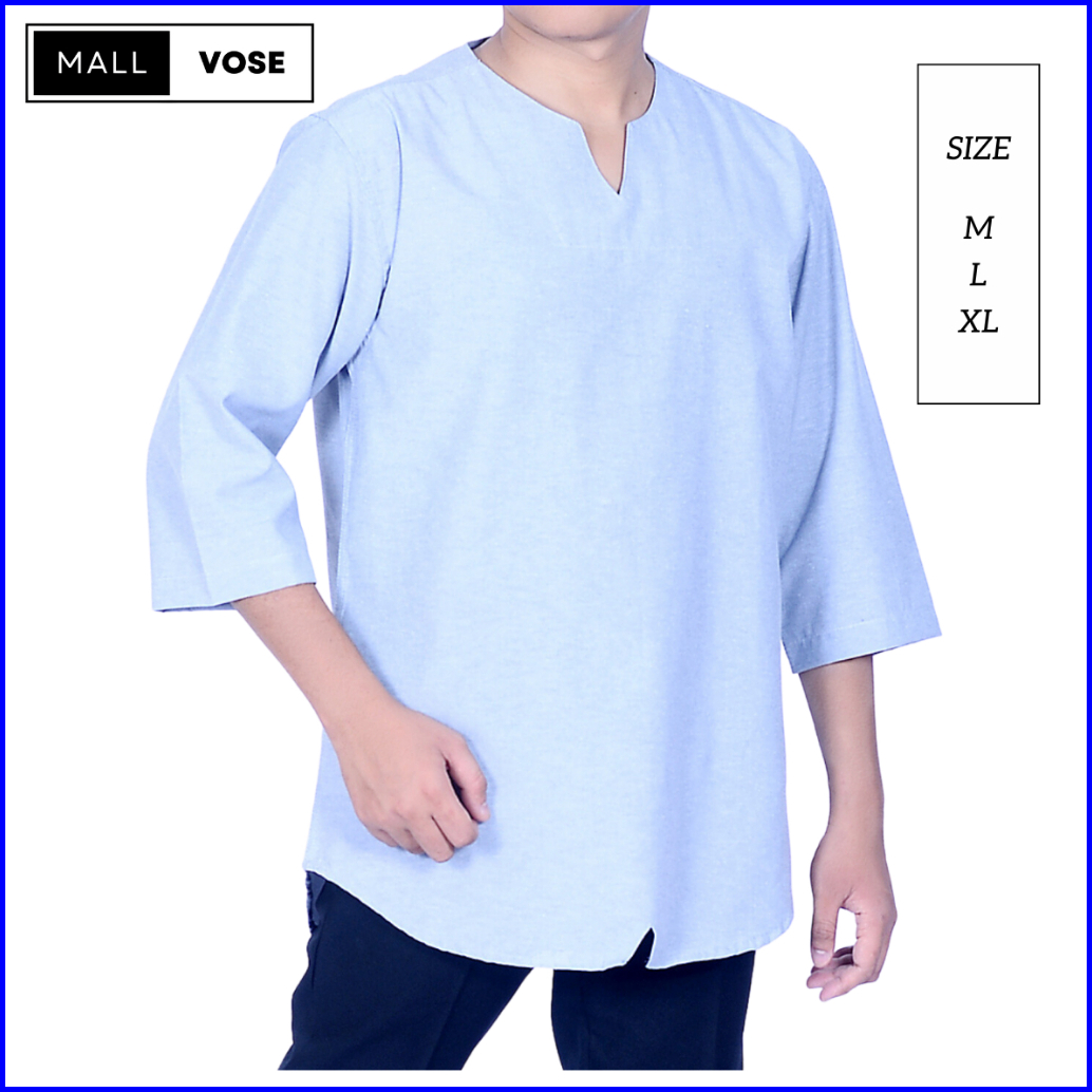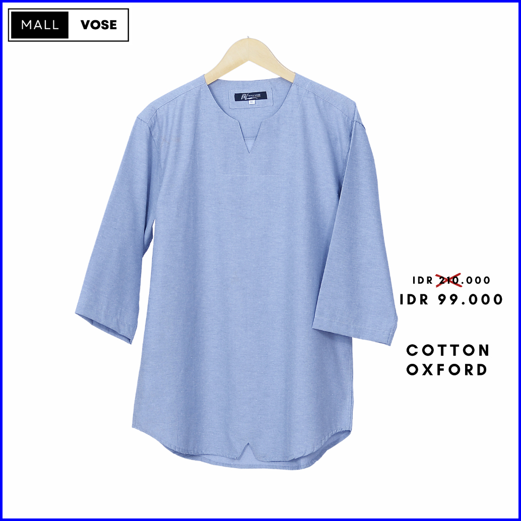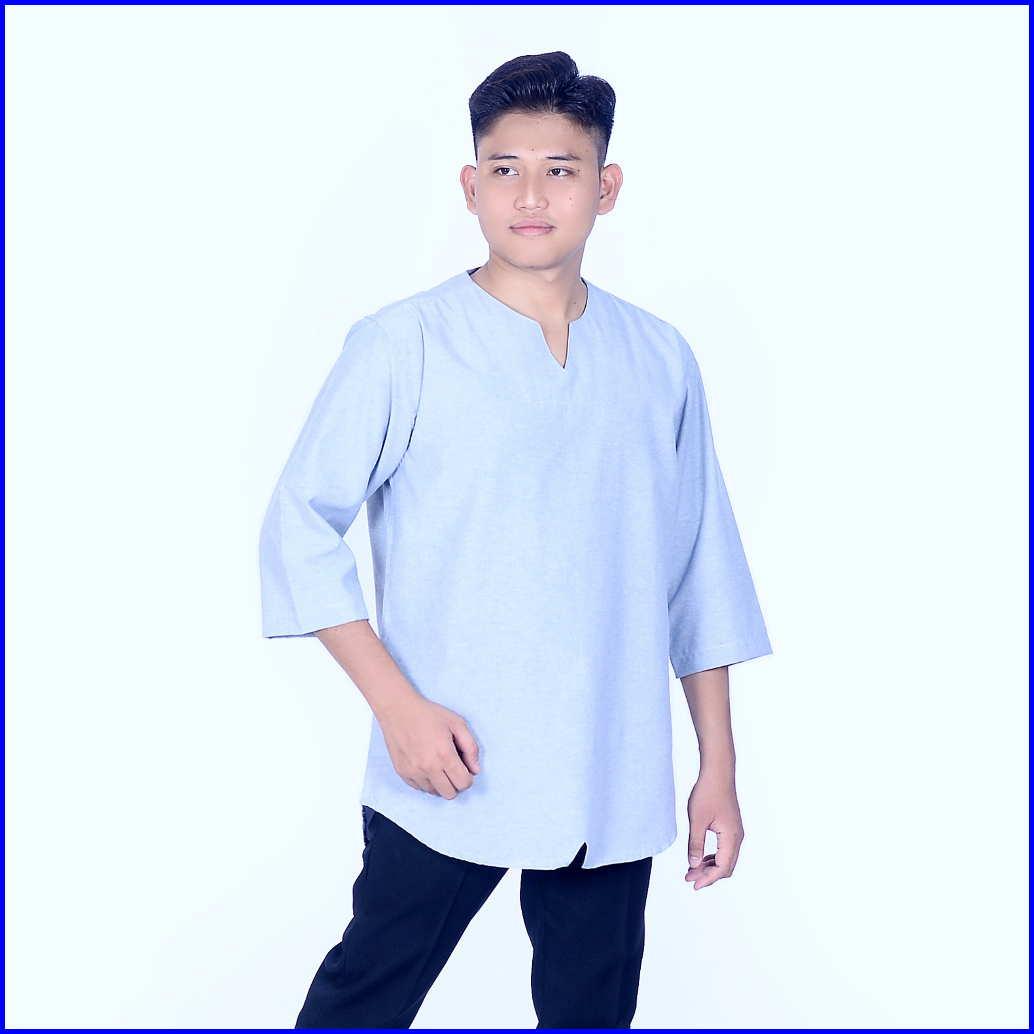 Mallvose - Koko Kemeja Pria Kurta Lengan 3 4 Baju Muslim Oxford Grey Mv05