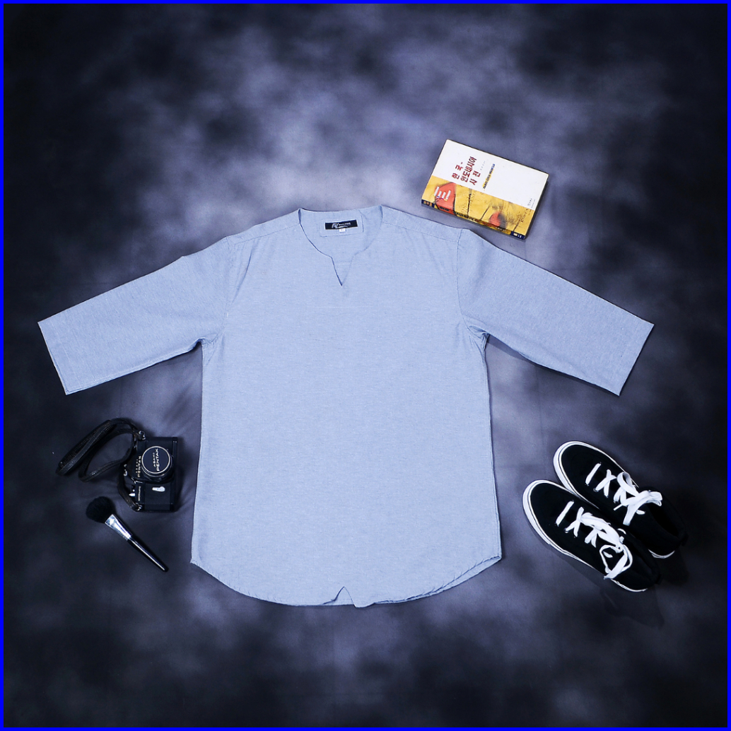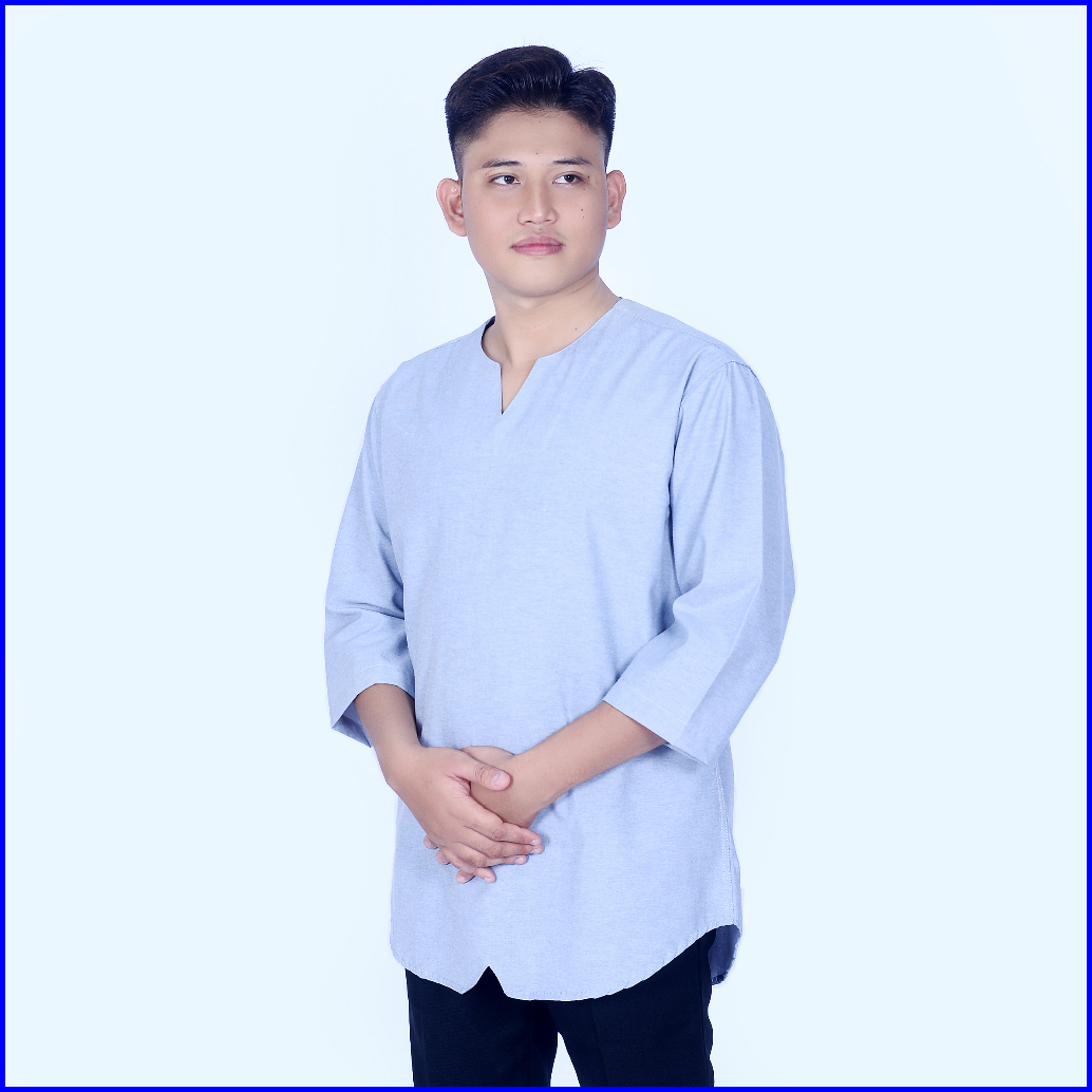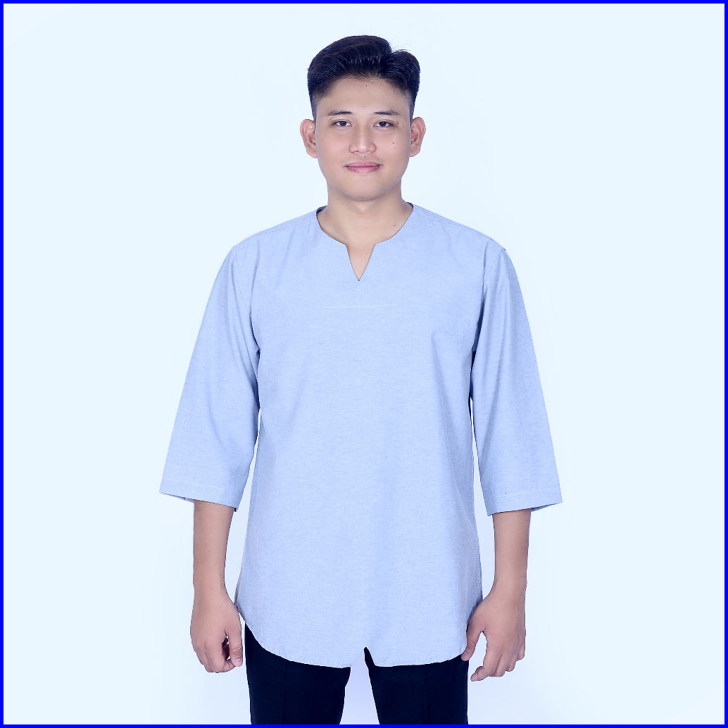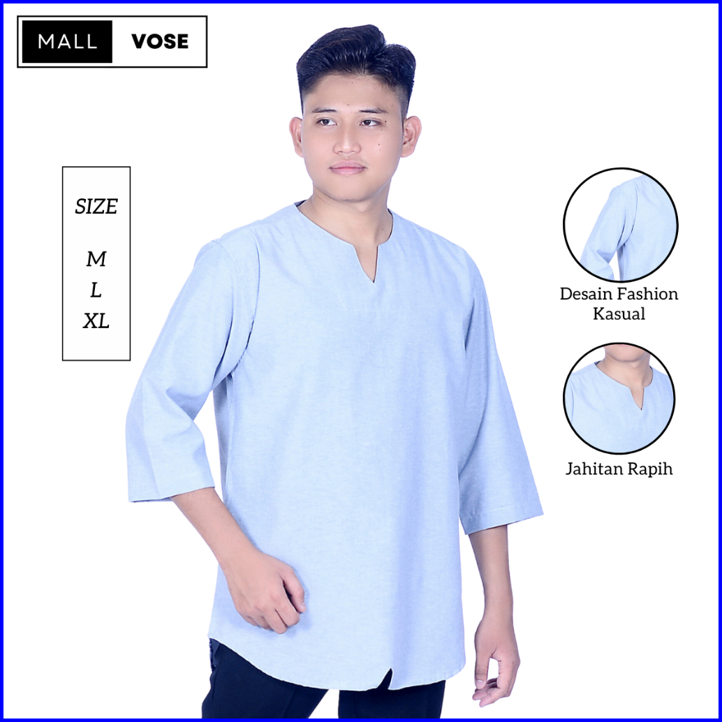 Mallvose - Koko Kemeja Pria Kurta Lengan 3 4 Baju Muslim Oxford Grey Mv05