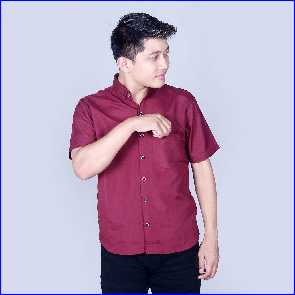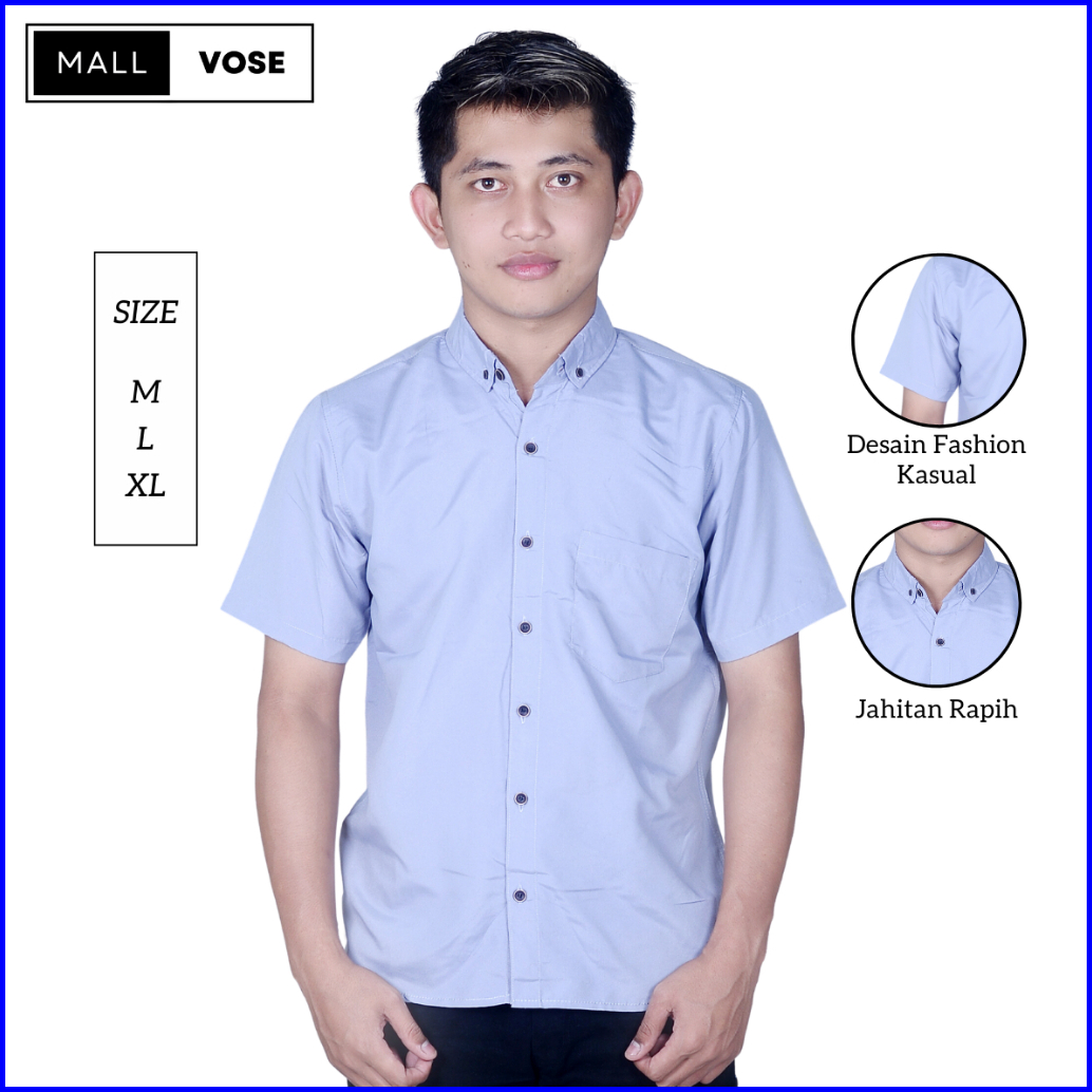 Mallvose - Kemeja Polos Lengan Pendek Kemeja Pria Lengan Pendek