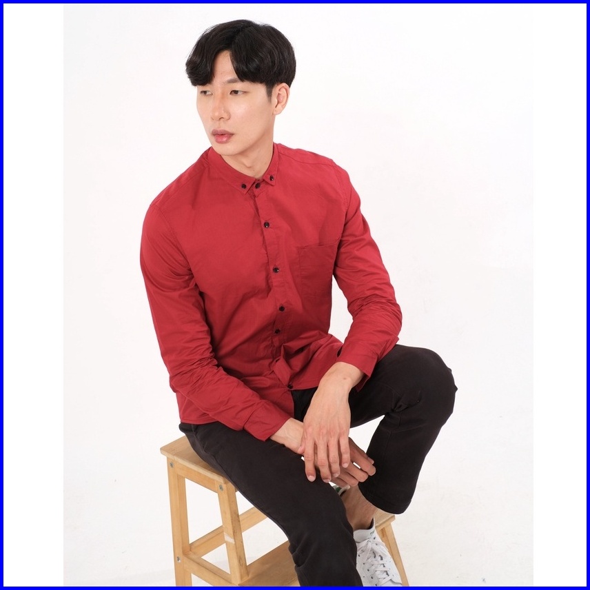 Mallvose - Kemeja Polos Lengan Panjang Pria Polos