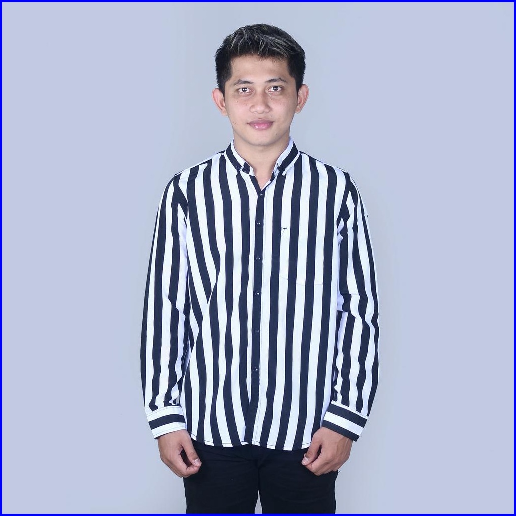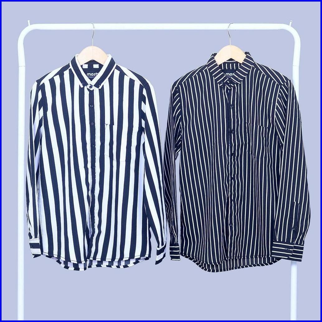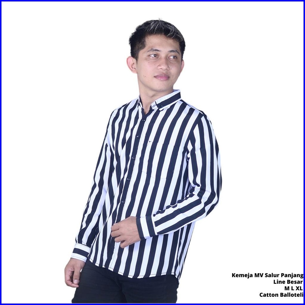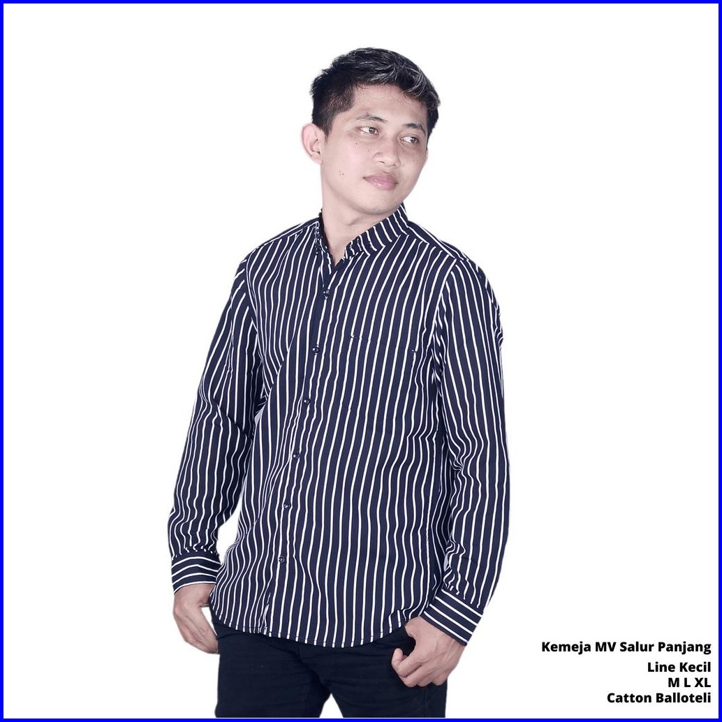Mallvose - Kemeja Pria Strip Lengan Panjang Salur M L Xl
