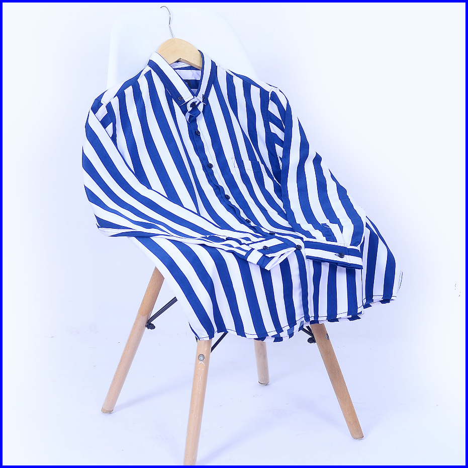 Mallvose - Kemeja Pria Salur Lengan Panjang Strip Biru M L Xl