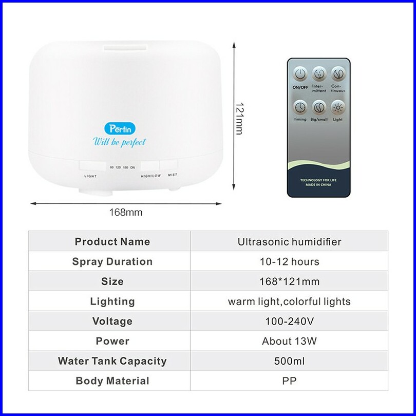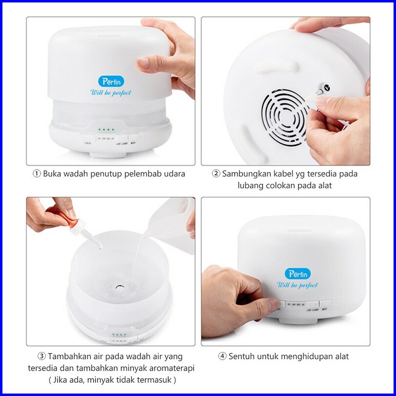 Perfin Phma06 Humidifier Diffuser Aromaterapi Air Purifier Ultrasonic Aroma Essential Oil Rgb 500ml