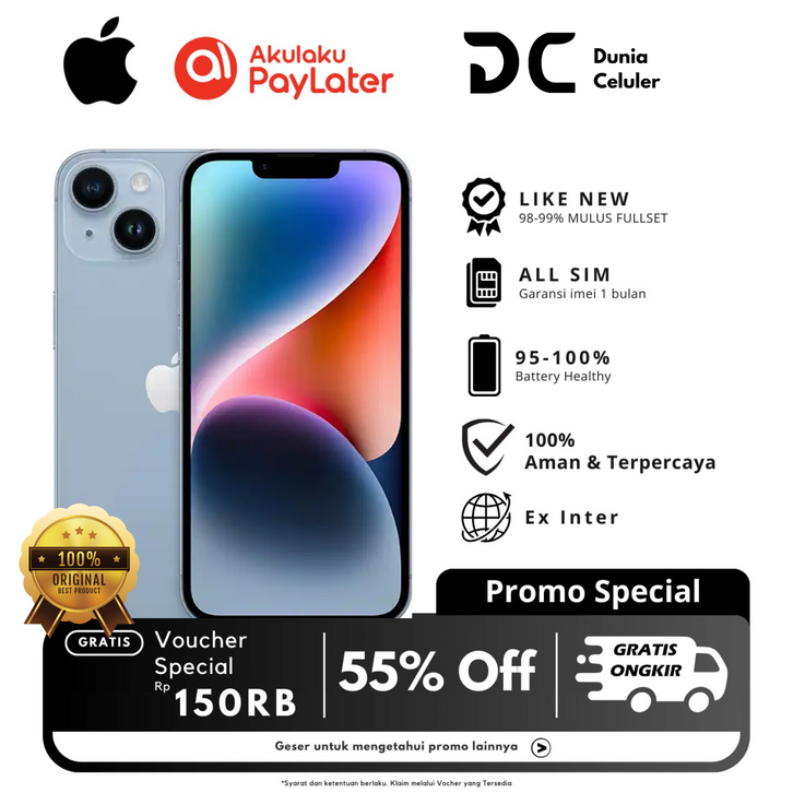 [ PROMO ] Apple iPhone 14 Second inter Original 512GB 256GB 128GB Mulus Fullset Like New Garansi Resmi Original