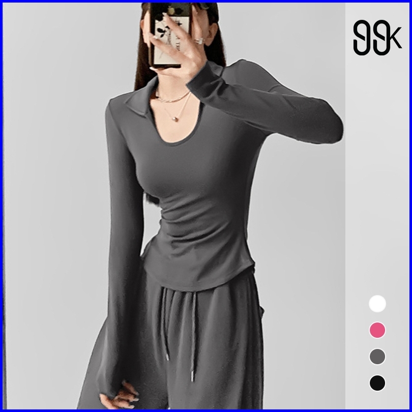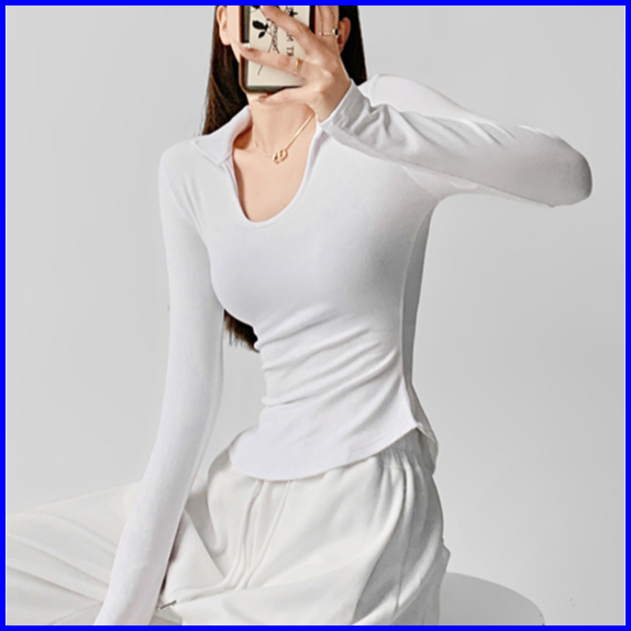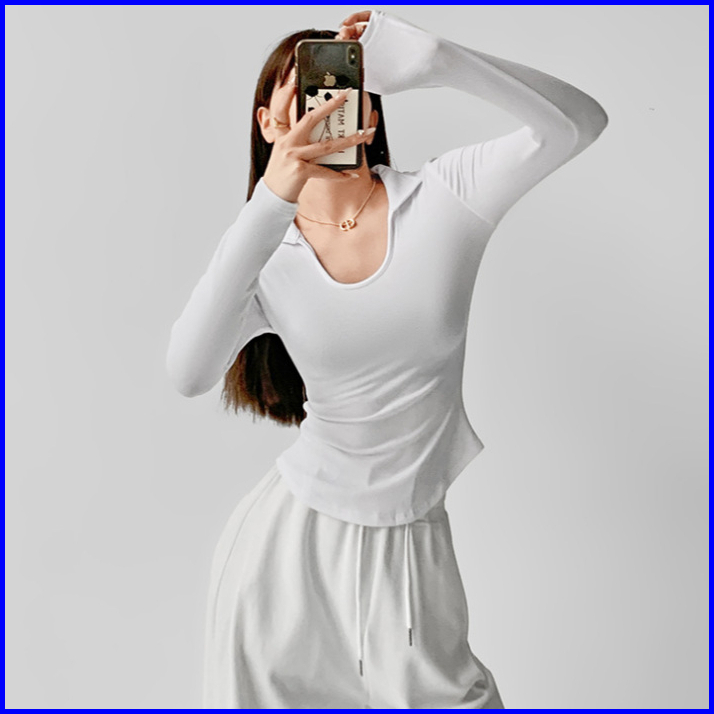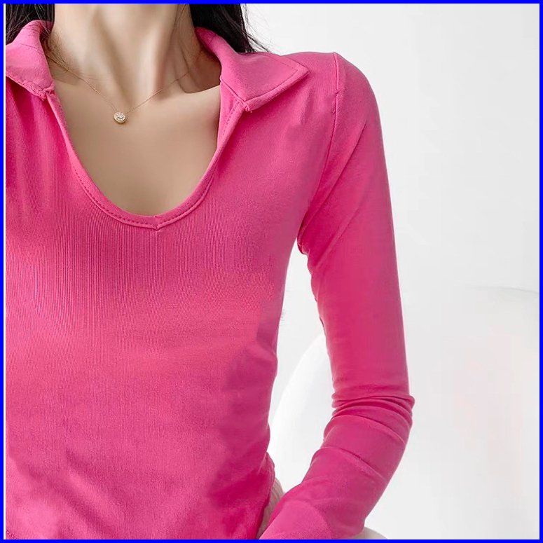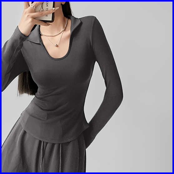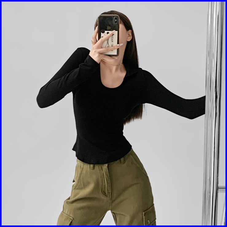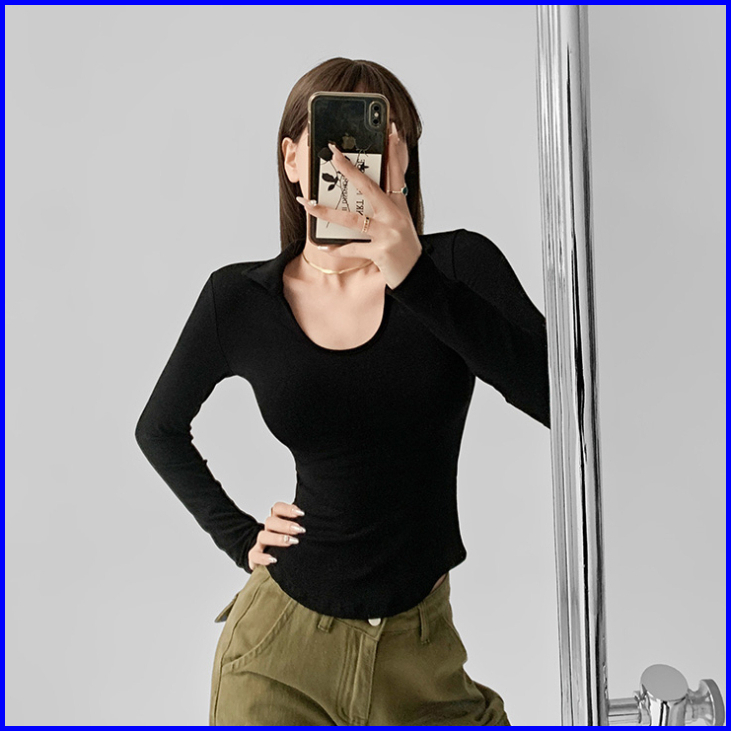 Premiumtop Long Slevee Scoop Neck Collar Plain 2946 S M L