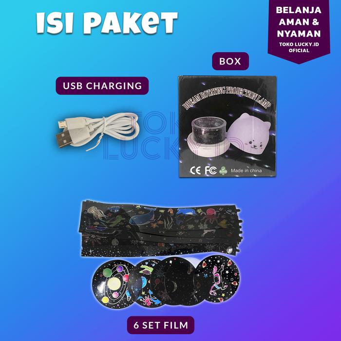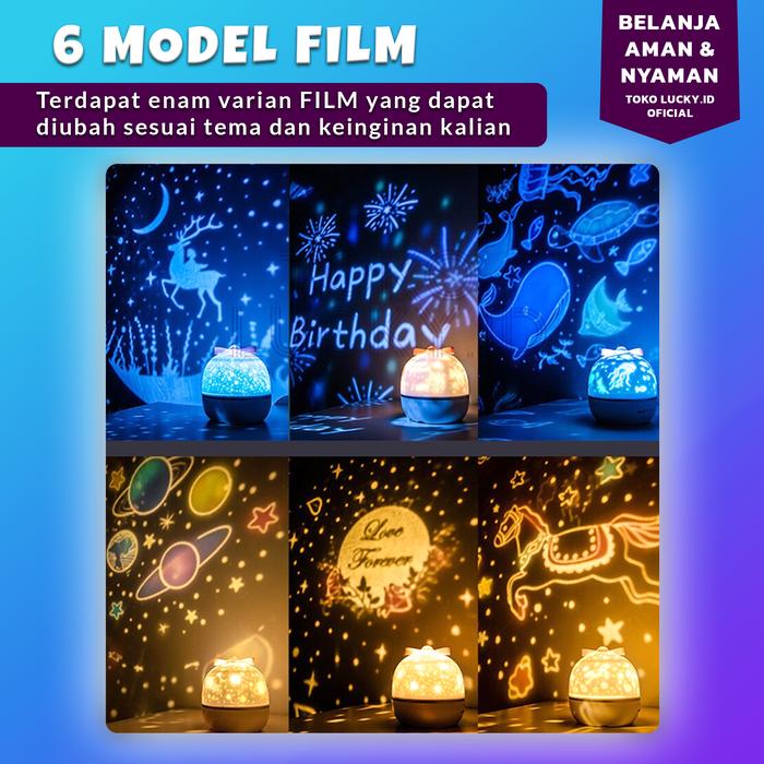 Promo Lampu Hias Kamar Proyektor Karakter Lucu 360 Rotating Unicorn Bulan Bintang Baterai Cable - Polos Promo