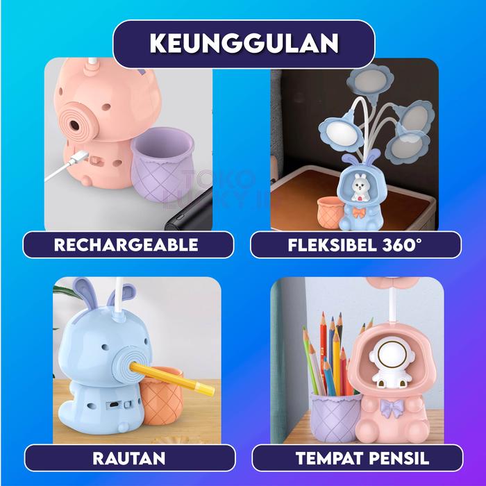 Terlaris Lampu Belajar Anak 3in1 Multifungsi USB Cas Rautan Tempat Pensil