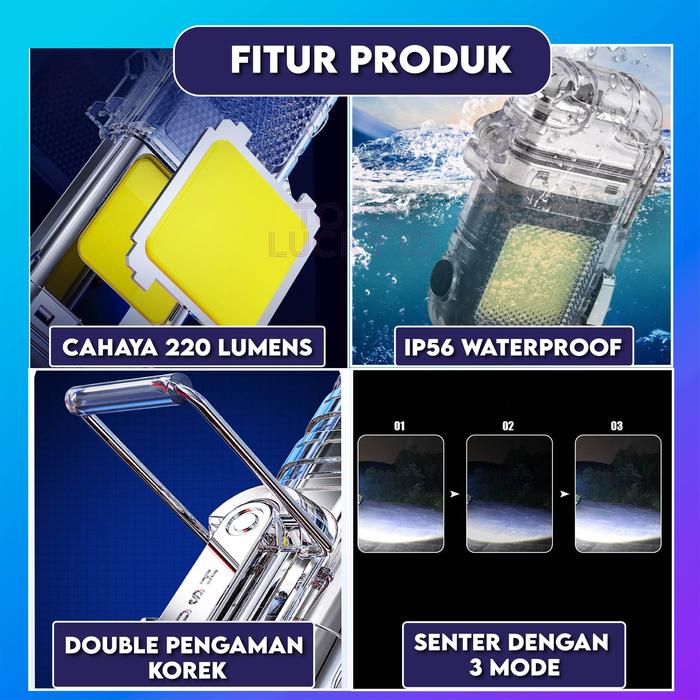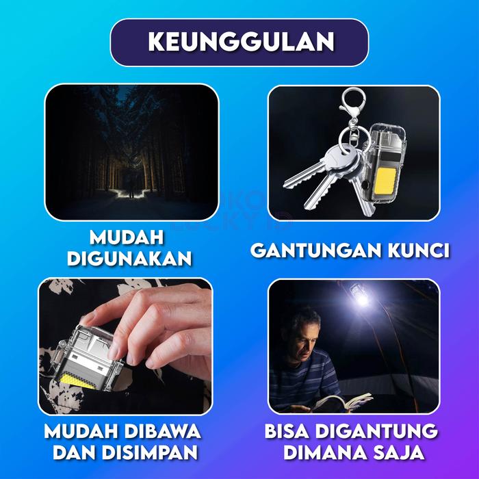 Murah Senter Mini 2in1 220 Lumens Lampu LED IPX4 USB Cas - Bara - Hitam Promo
