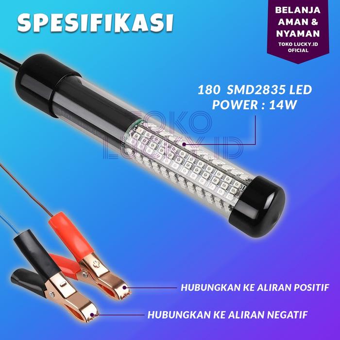 Promo Lampu Celup Pancing LED Lampu Bawah Air 14 Watt 12-24V Green Fishing Light Ikan - 14 Watt no Saklar Promo