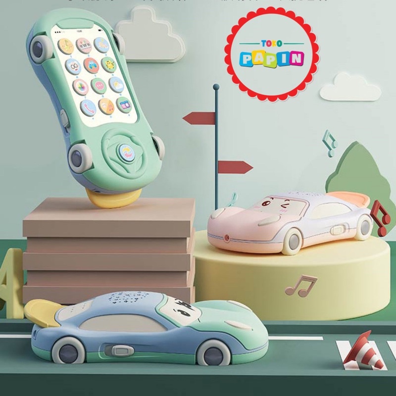 (FLASH SALE) TokoPapin Mainan Edukasi Anak Bayi Musikal Telepon Handphone Mobil Nyala Lampu Bisa Dijadikan Mobil Mobilan