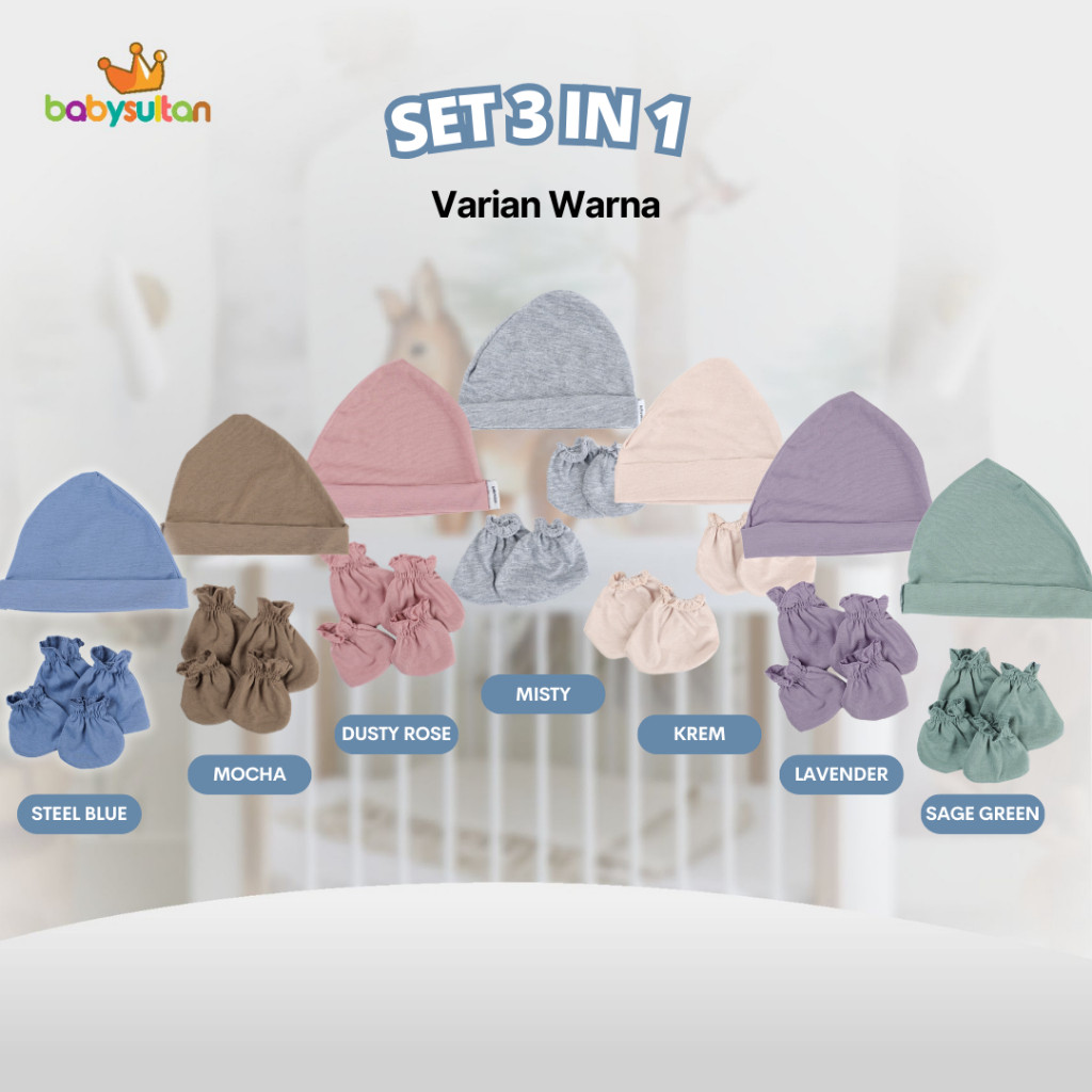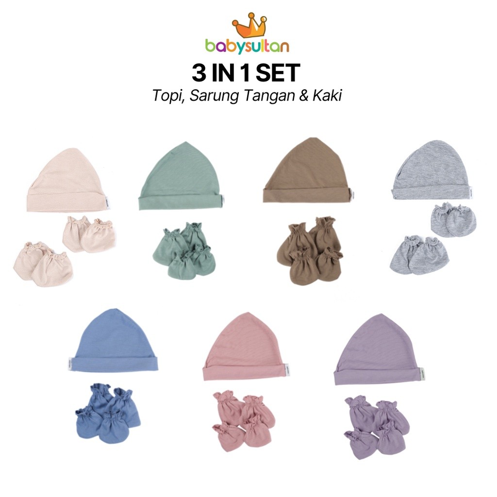 Set Topi dan Sarung Tangan Kaki Bayi Polos Pastel babysultan