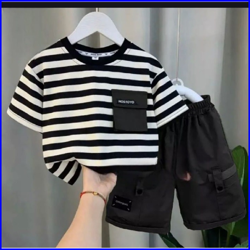 Kaos Anak Dan Celana Pendek Anak Motif Salur 1-5 Tahun Ardan Baju Anak Grosir
