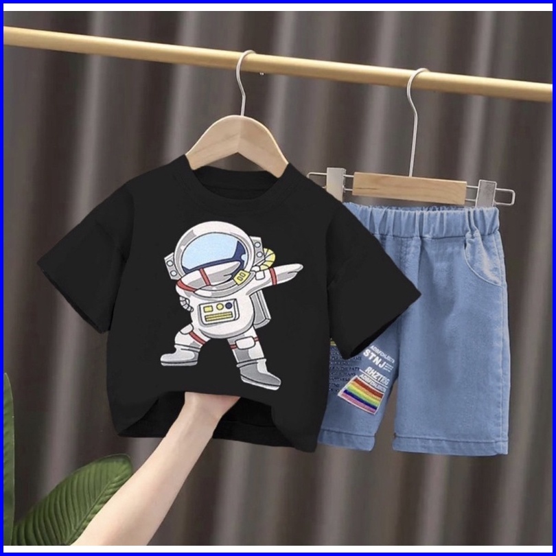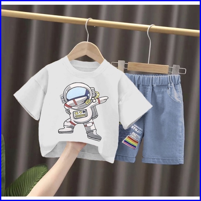 Baju Dan Celana Pendek Levis Anak Motif Astonot 1-5 Tahun