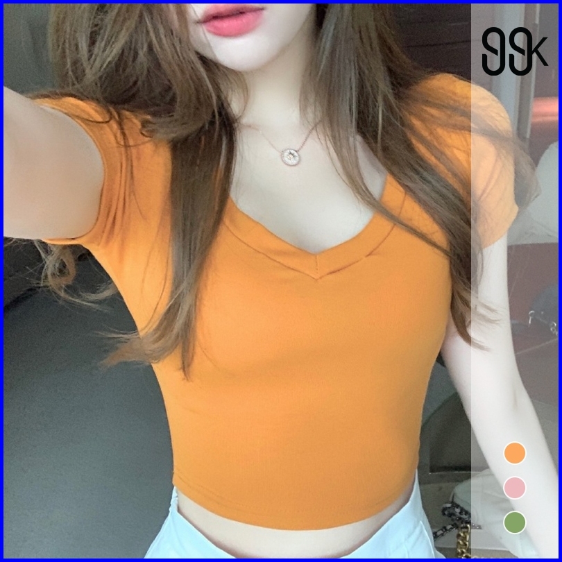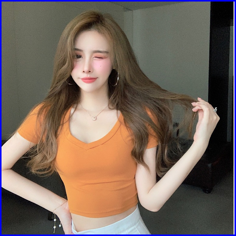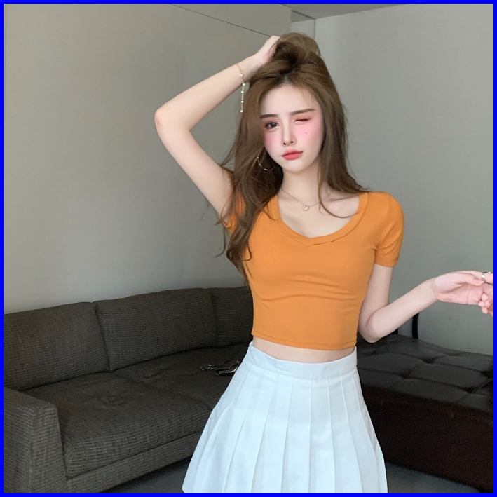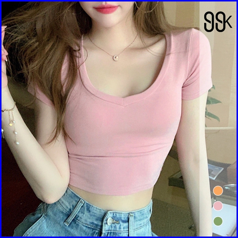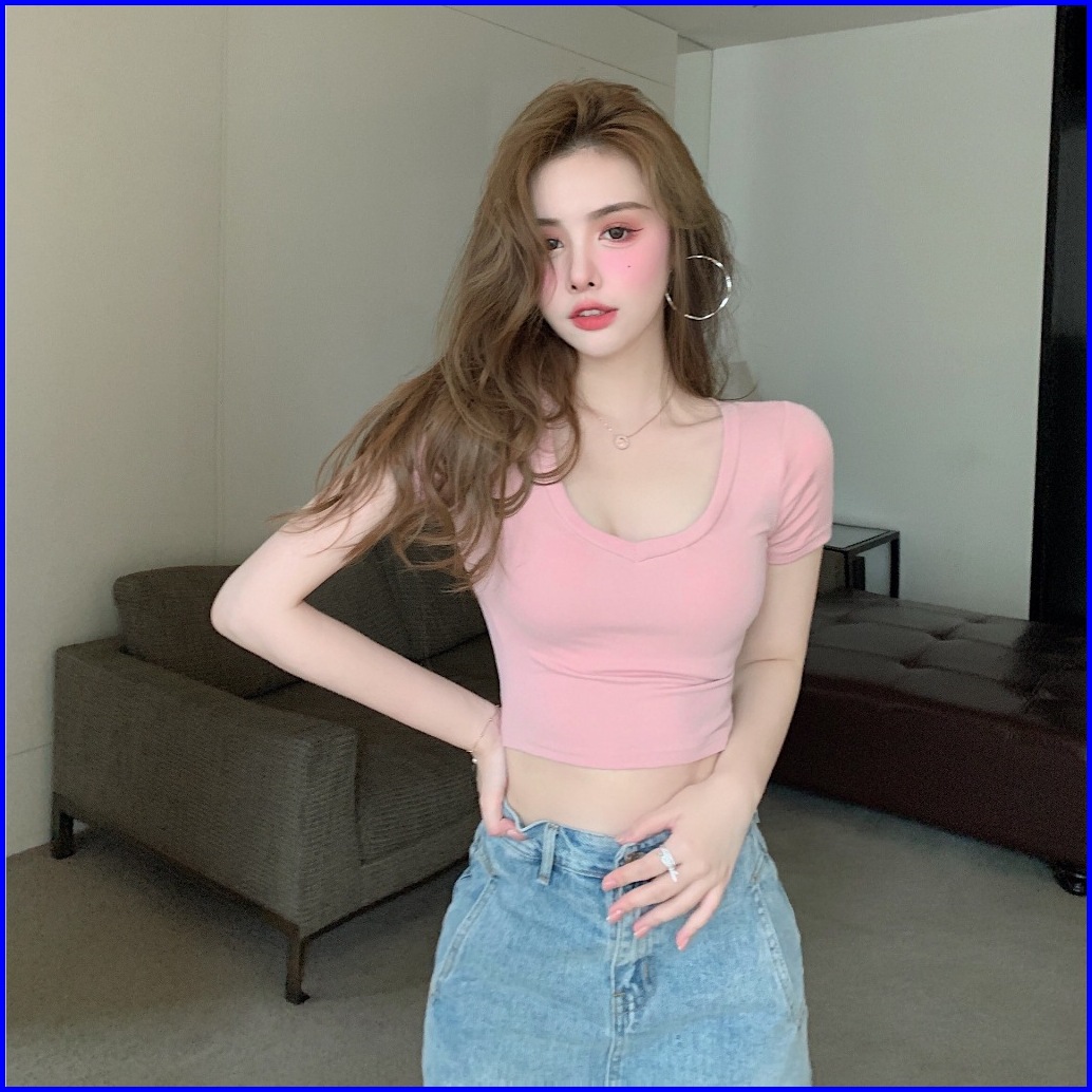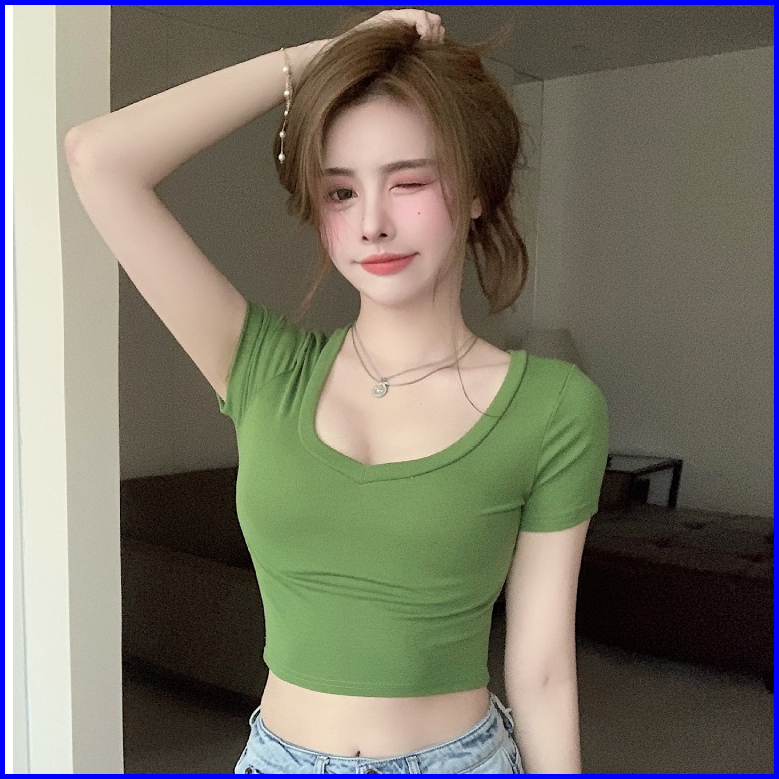 U Neck Slim Fit Crop Tee Top T-shirt 1485 S-xl