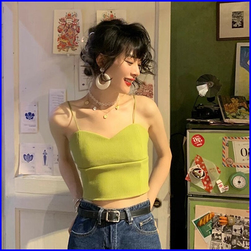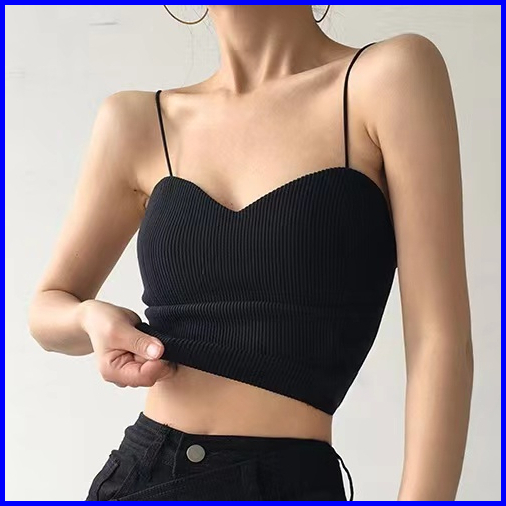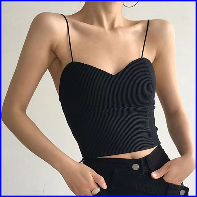 Premium99koutlet Tanktop Wanita Knitted Sleeveless Camisole Polos Spaghetti Strap S M L 2419 Kamisol Women Tangtop Plain