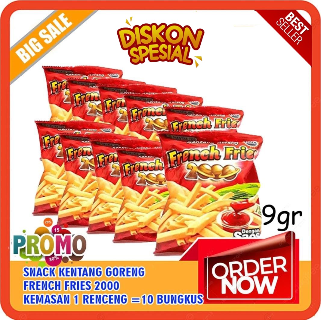 snack ciki kentang goreng French Fries 2000 9g 1 dus isi 40 bungkus - GRATIS ONGKIR