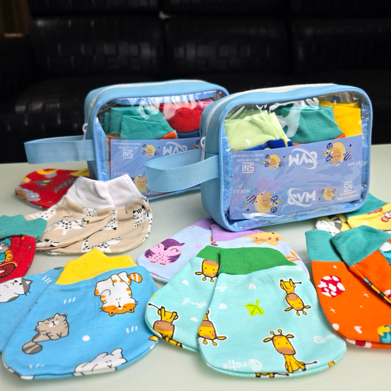 (24 Pcs Sartaki + Bonus Dompet) - Sarung Tangan Dan Sarung Kaki Bayi Set + Tas Premium / Tas Mika Leather + Sarung Tanga