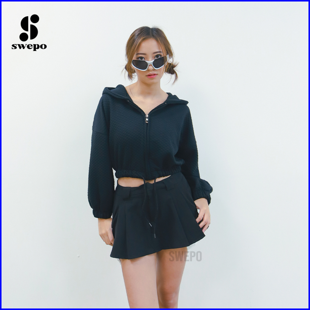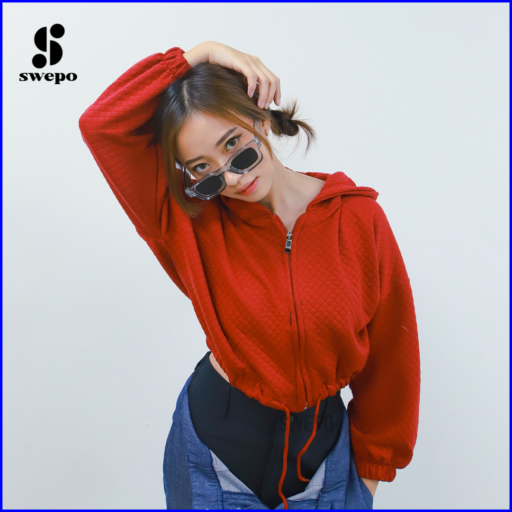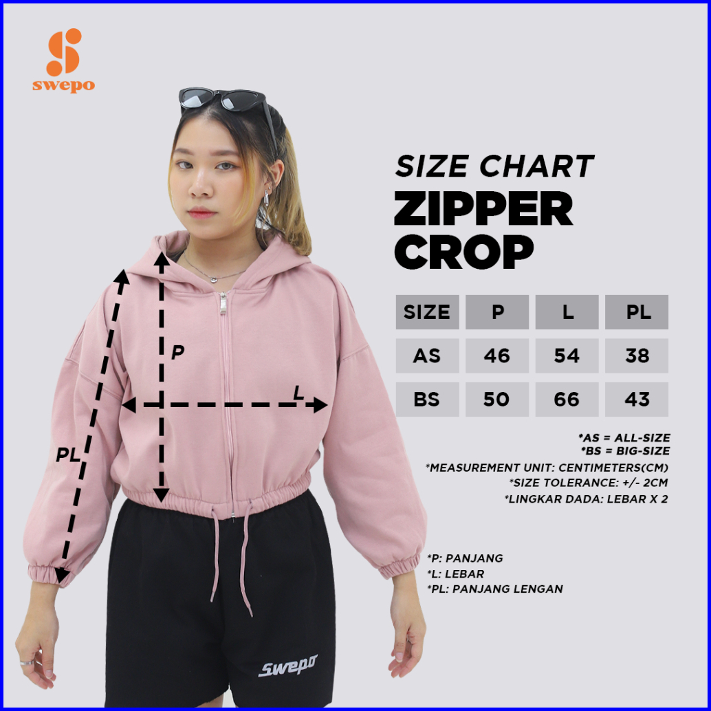 Swepo Hoodie Zipper Crop Joy Size M-l Allsize Dan Xl-xxl Bigsize