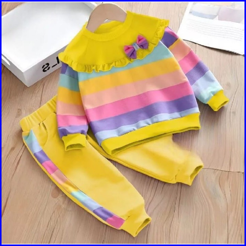 Setelan Sweter Anak Perempuan Baju Dan Celana Panjang Anak Motif Pelangi 1-5 Tahun Ardanbajuanakgrosir