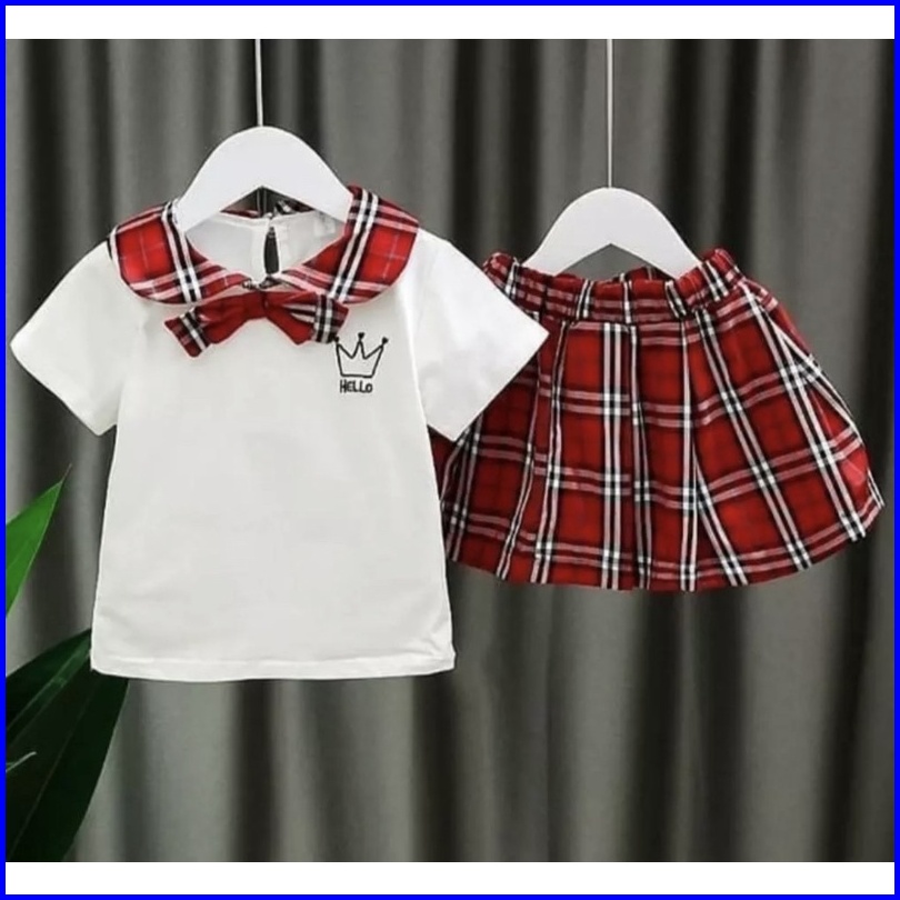 Promo Kaos Anak Setelan Anak Perempuan Model Rok Motif Hello 1-5 Tahun