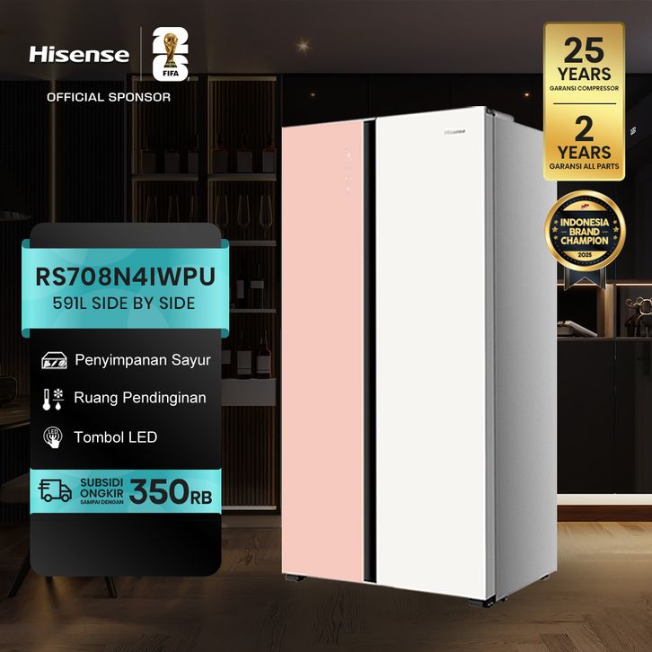 Hisense Kulkas - Side by Side - RS708N4IWPU - Kapasitas 591L Refrigerator - Pink Putih No Frost + Multi Air Flow