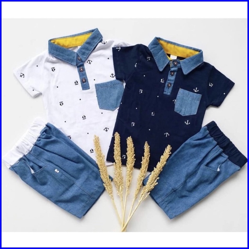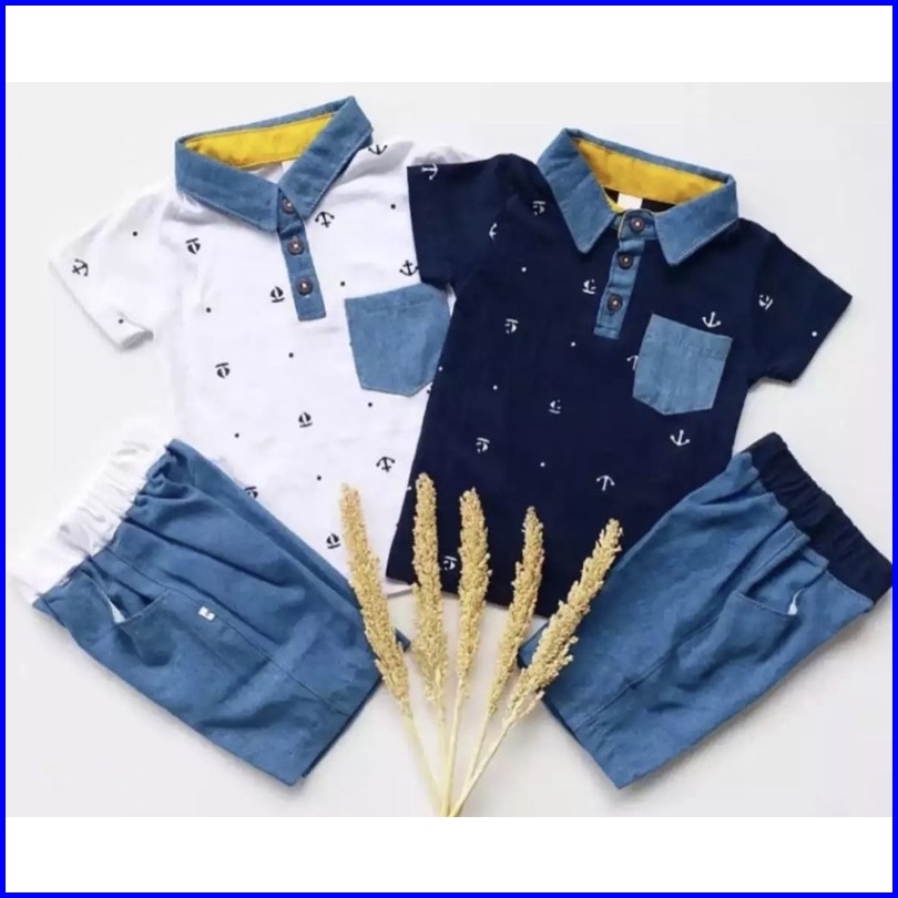 Setelan Baju Dan Celana Anak Jangkar Denim 1-5 Tahun