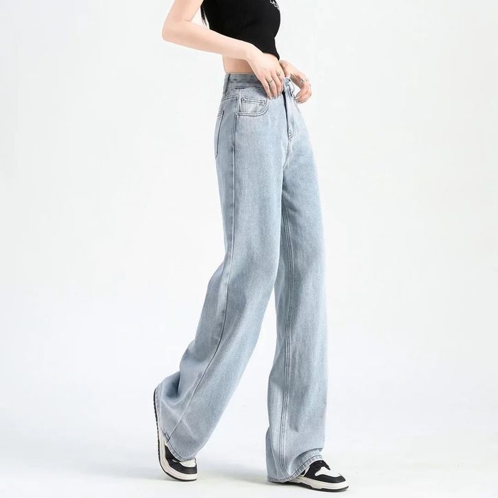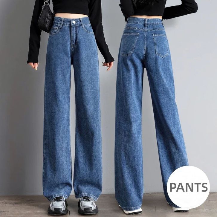 Celana Jeans Oversize S-5XL Celana Jeans Denim Ibu Pinggang Tinggi Kaki Lebar Untuk Wanita