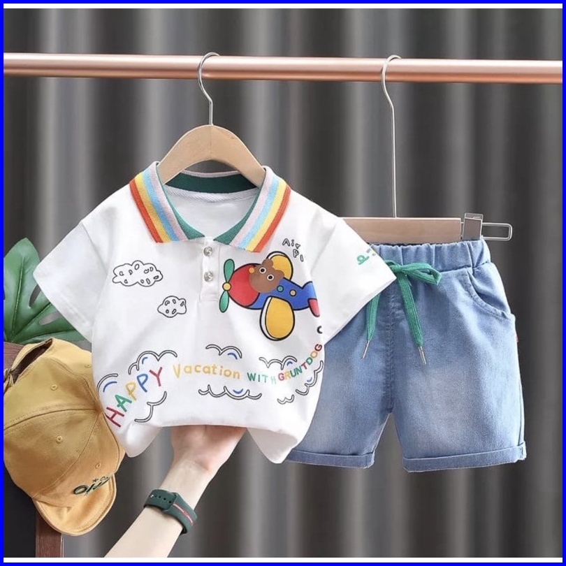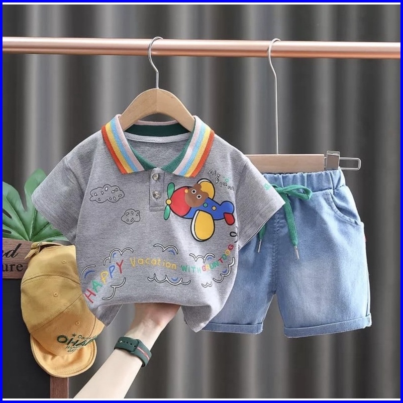 Setelan Anak Kerah Celana Pendek Denim 1-5 Tahun Grosir Motif