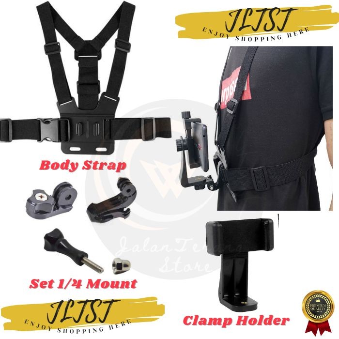 CHEST STRAP TALI DADA HANDPHONE & KAMERA BODY BELT HOLDER HP KOMPLIT - SUPER KOMPLIT