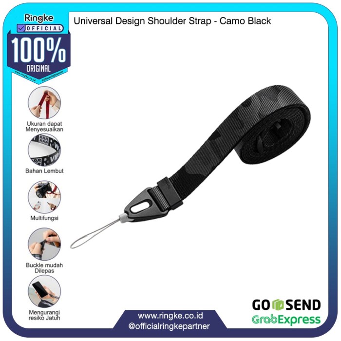 RINGKE SHOULDER STRAP CAMO BLACK NECK TALI KAMERA LEASH SLING DSLR