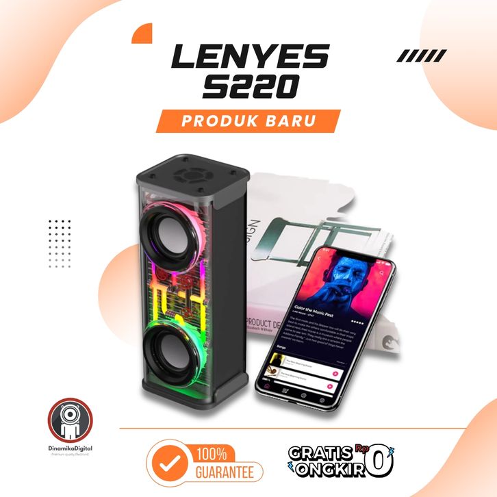 Speaker Bluetooth Transparan Lenyes Rgb Tws V5.3 12watt Hifi Stereo S220
