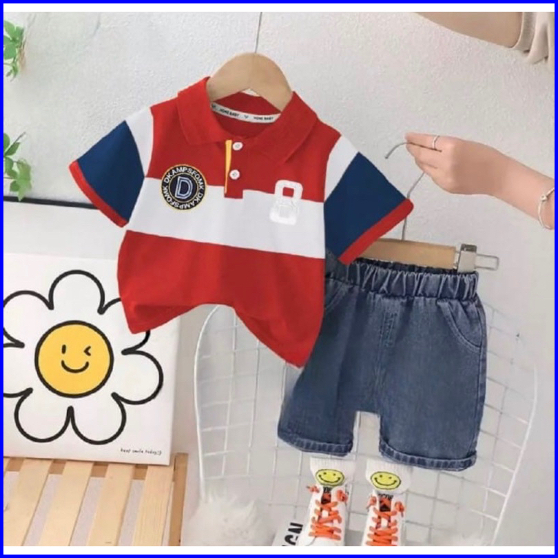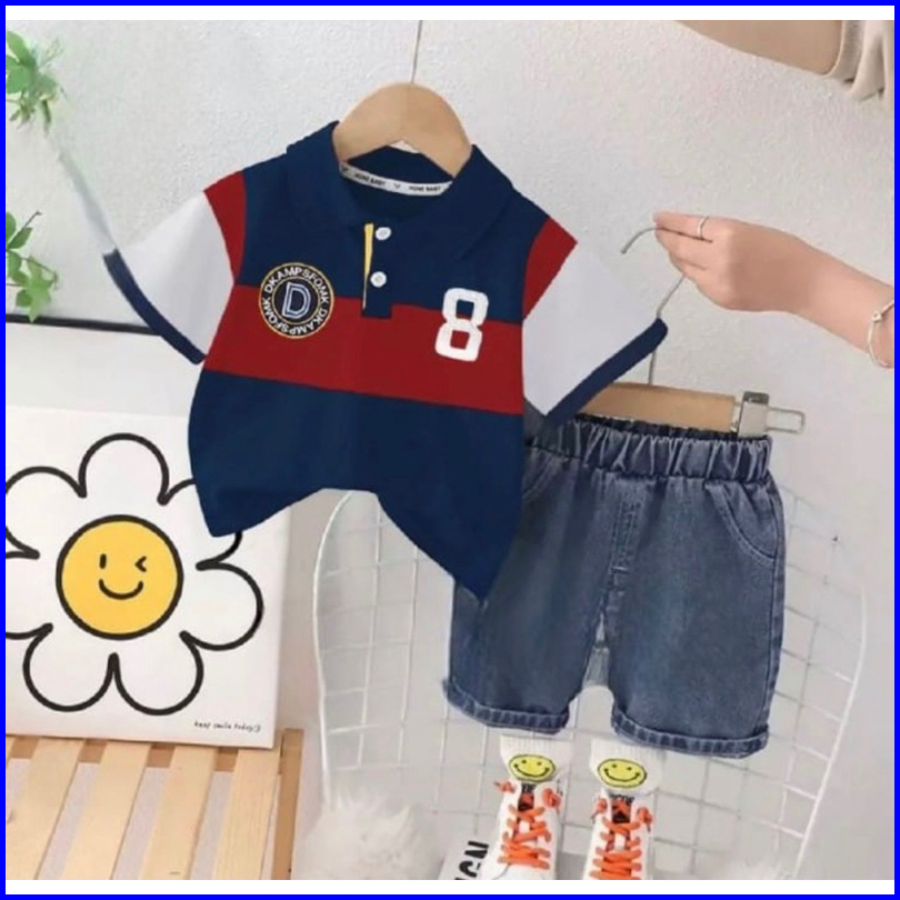 Setelan Anak Laki Laki Berkerah Dan Celana Denim Pendek Anak 1-5 Tahun Ardanbajuanakgrosir