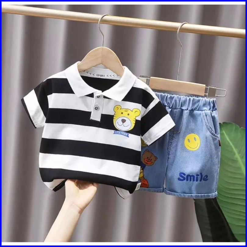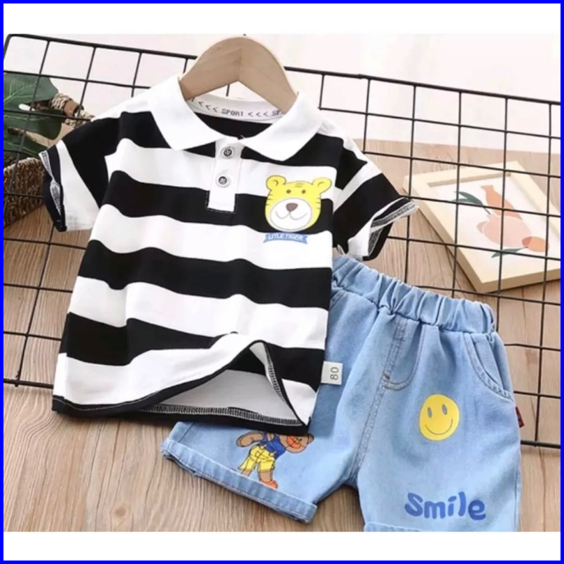 Baju Anak Setelan Anak Berkerah Dan Celana Denim Anak 1-5 Tahun Ardan Baju Anak