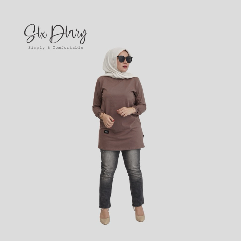 Six Diary Baju wanita kaos tunik kaos lengan kerut terbaru six diary polos