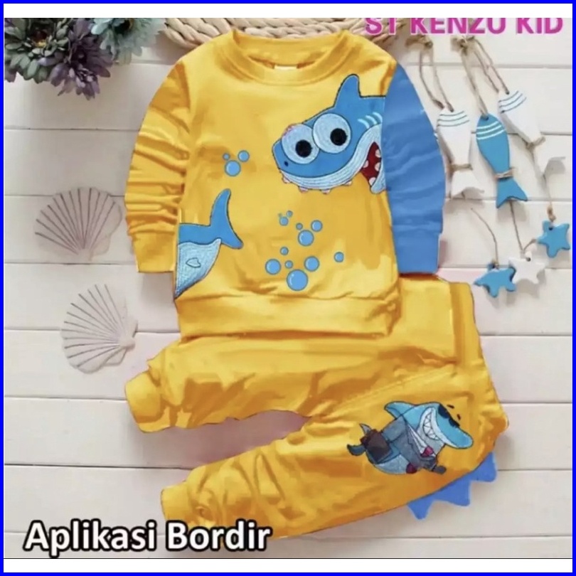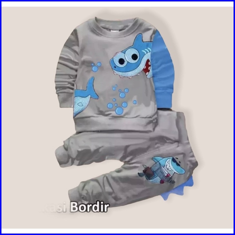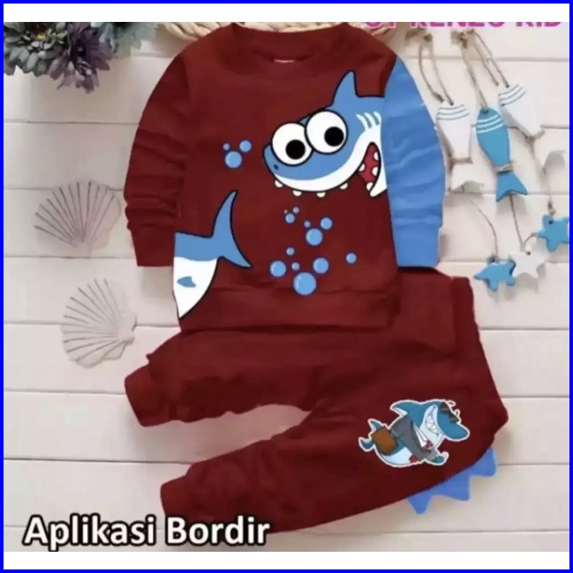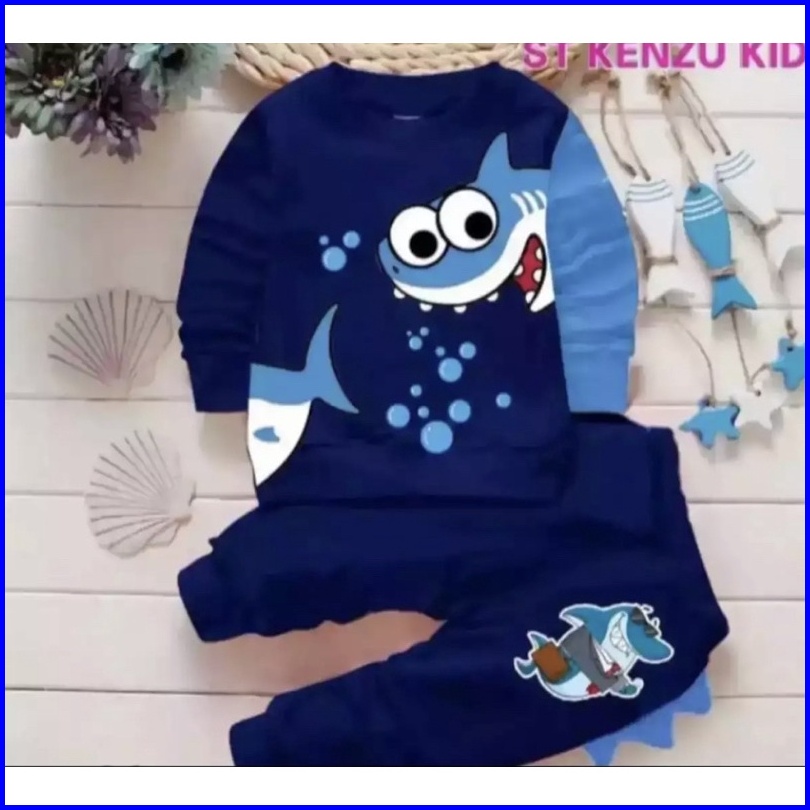 Setelan Sweater Anak Motif Shark Baju Sweater Anak Laki Laki Dan Perempuan