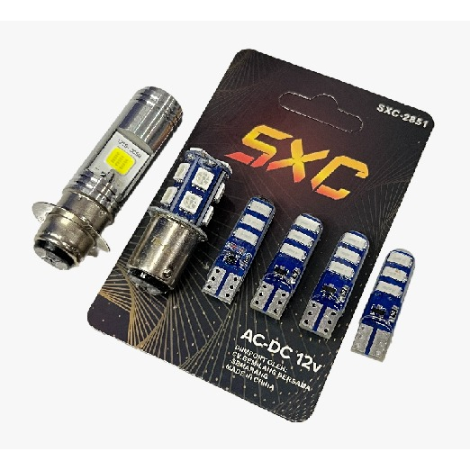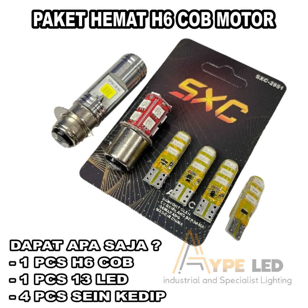 Paket Combo Lampu Utama Motor H6 COB Super lengkap DC | Bohlam Stop 13 Led | 4 Pcs T10 Jelly Flash / Kedip | Universal Bisa Untuk Semua Motor