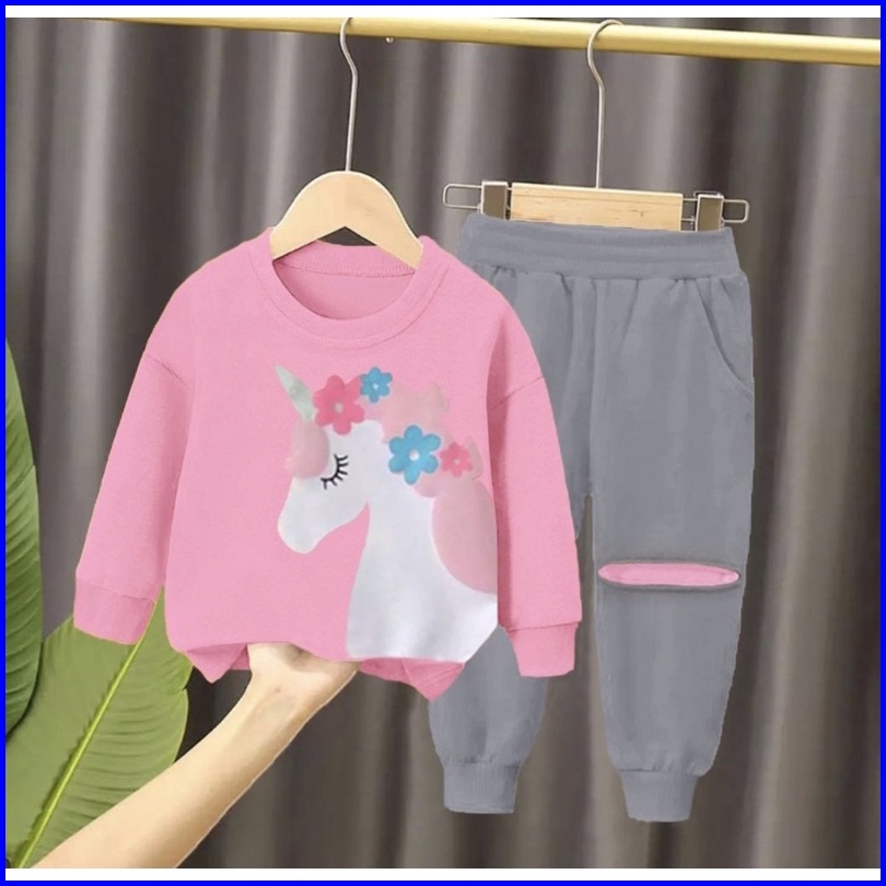 Promo Setelan Sweater Dan Joger Anak Perempuan Pilih Warna 1-5 Tahun Grosir