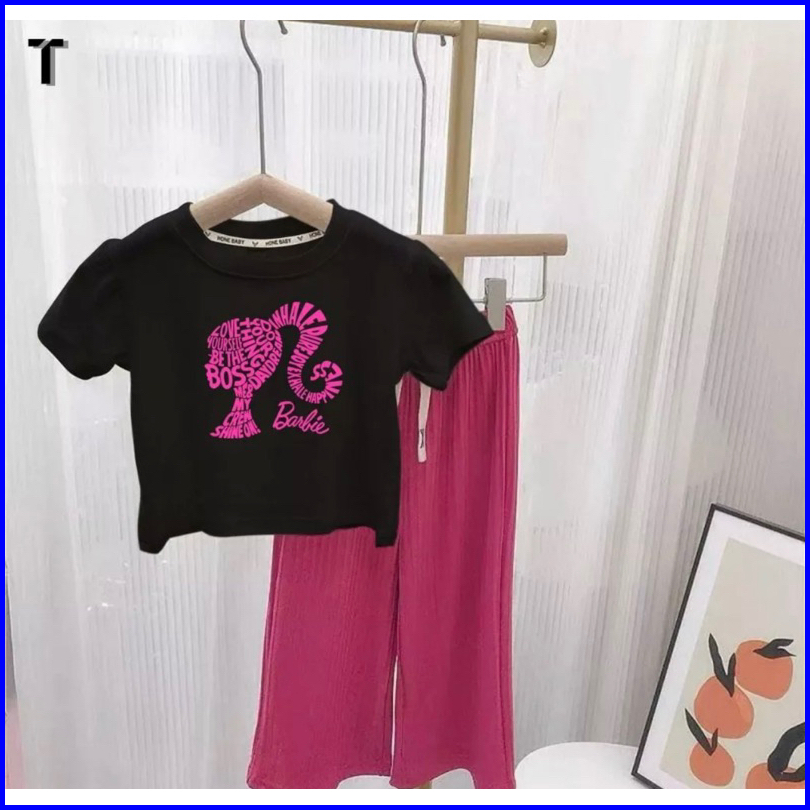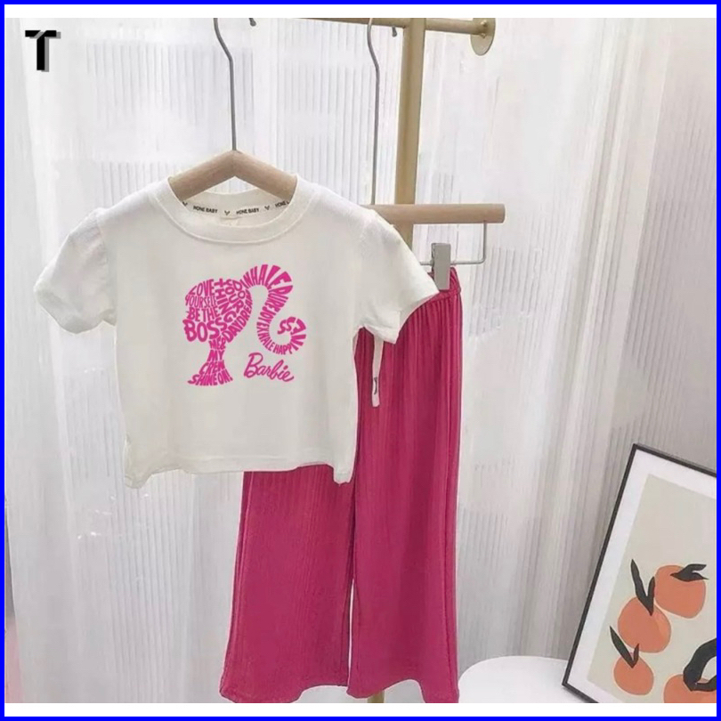 Setelan Anak Lengan Pendek Dan Celana Panjang Anak Perempuan Motif Barbie 1-5 Tahun Ardan Grosir
