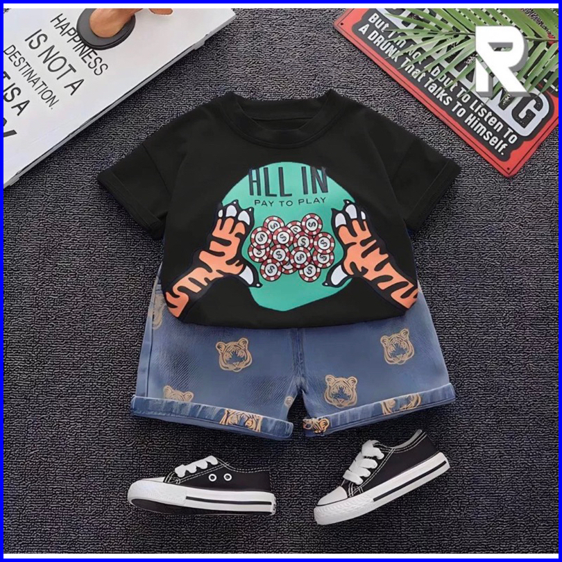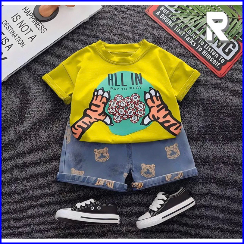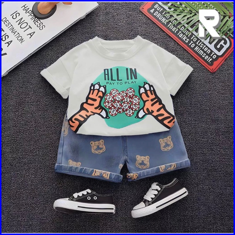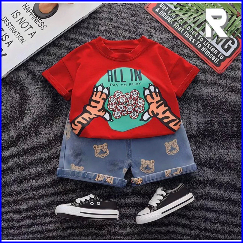 Kaos Anak Laki Laki Perempuan Dan Celana Denim Anak Setelan Anak Perempuan 1-5 Tahun Grosir